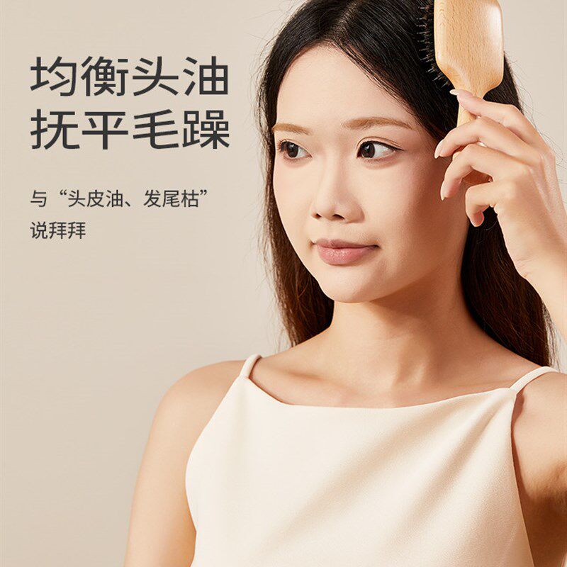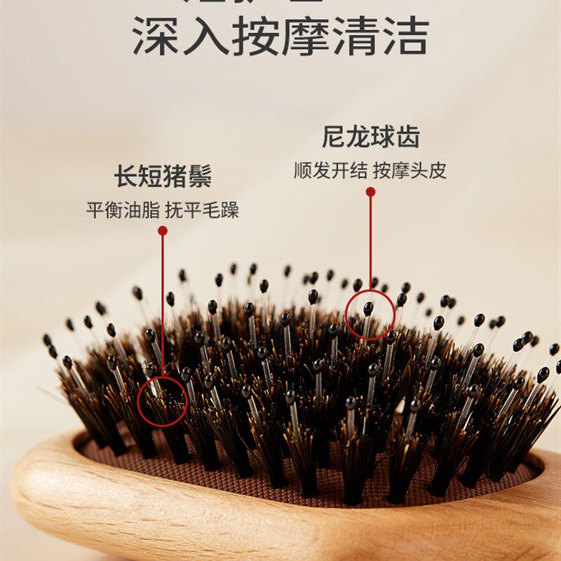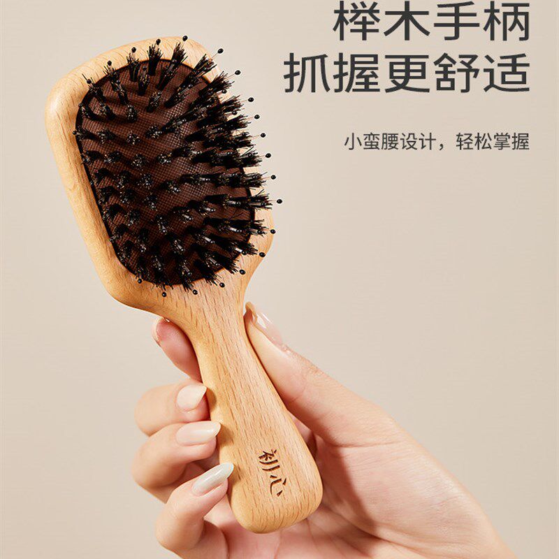 初心猪鬃梳子木梳气垫梳迷你便携小随身蓬松O气囊梳按摩梳女士专
