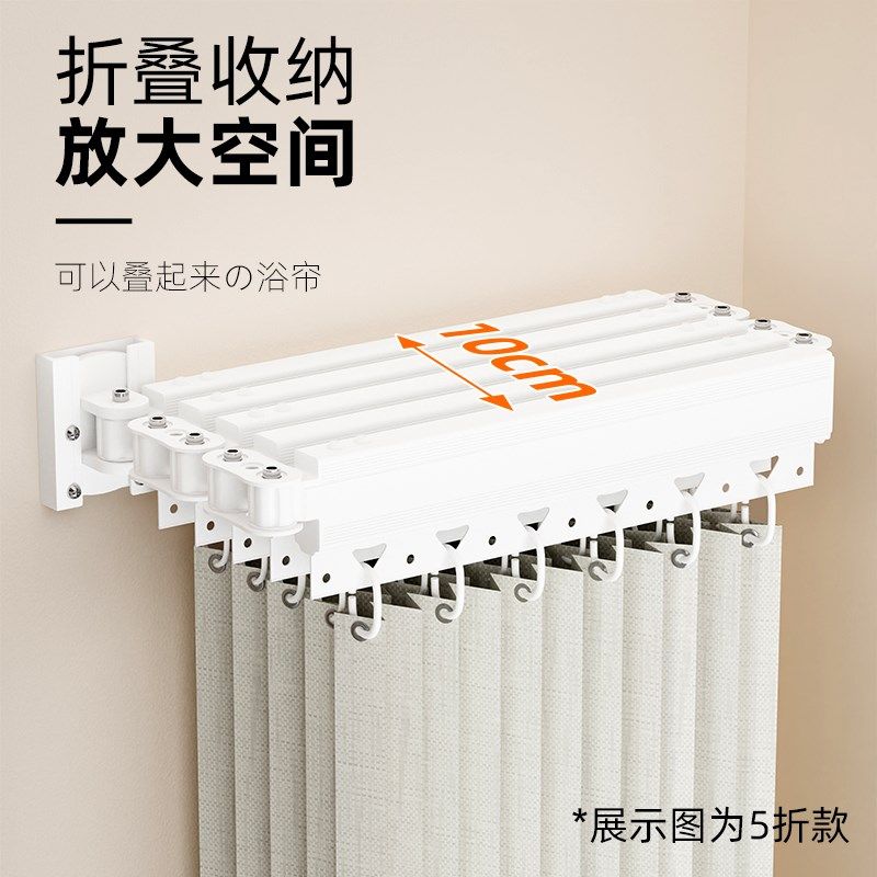小户型卫生间隐形折叠浴帘免打孔干湿分离隔断帘浴室淋浴防水挂帘