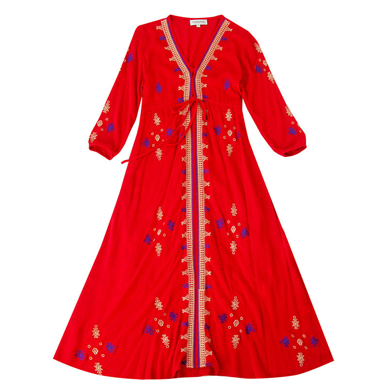 民族风刺绣复古大码显瘦长袖云南大理海南度假连衣裙沙滩裙长裙夏