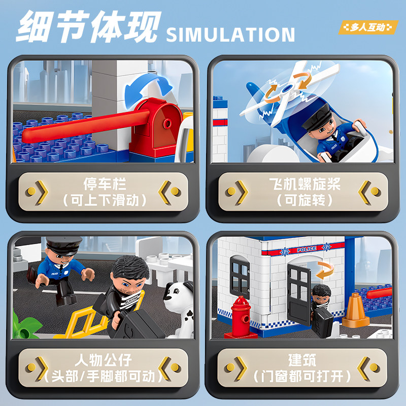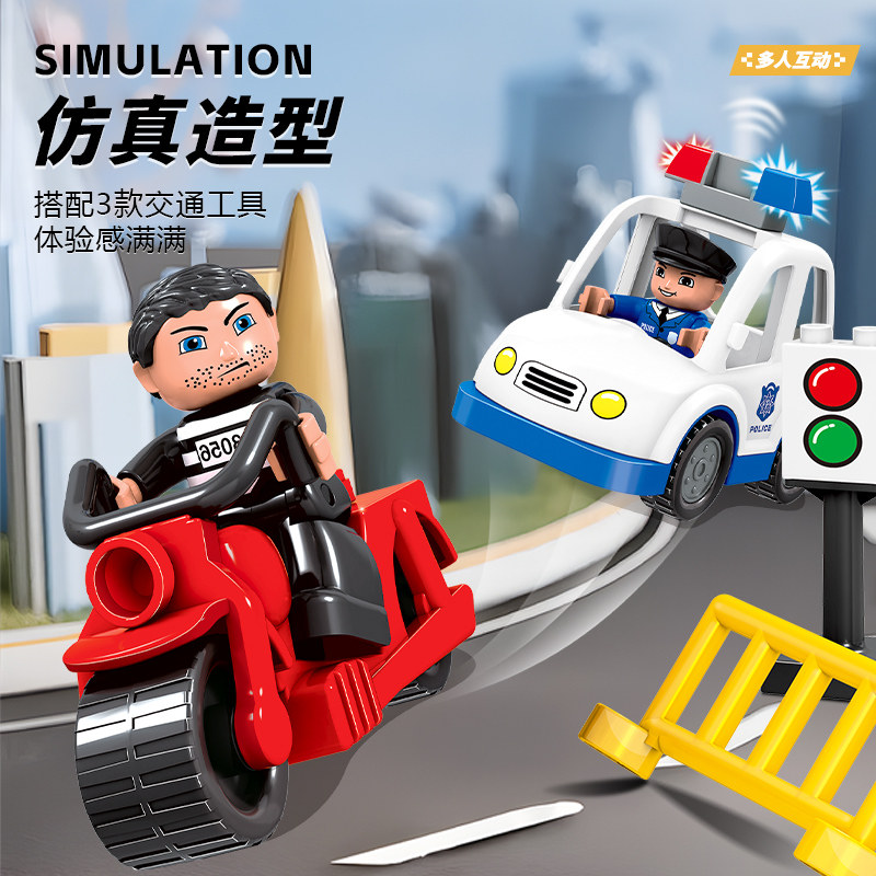 铭希城市消防警察局积木男孩3岁6汽车大颗粒大号儿童益智拼装玩具