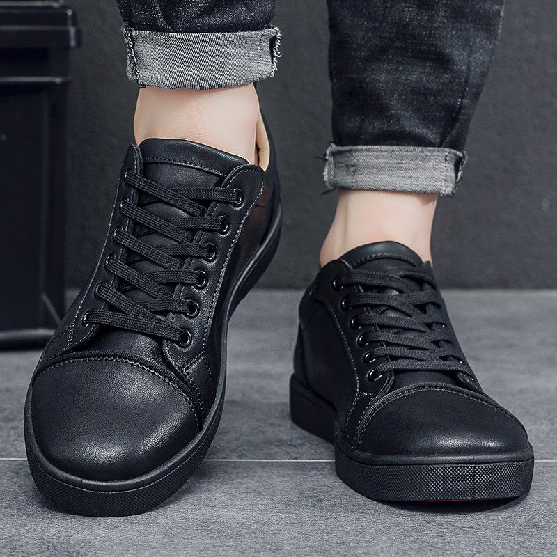 黑色板鞋男士纯黑鞋m商务工作休闲鞋子男2024新款上班不累脚防水