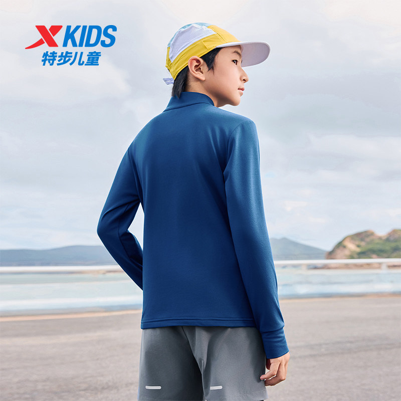 特步童装中大童长袖立领卫衣保暖上衣男大童运动训练篮球服打底衫