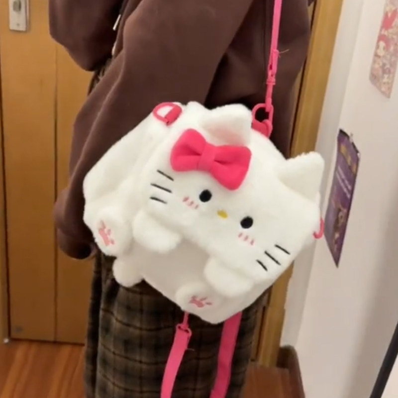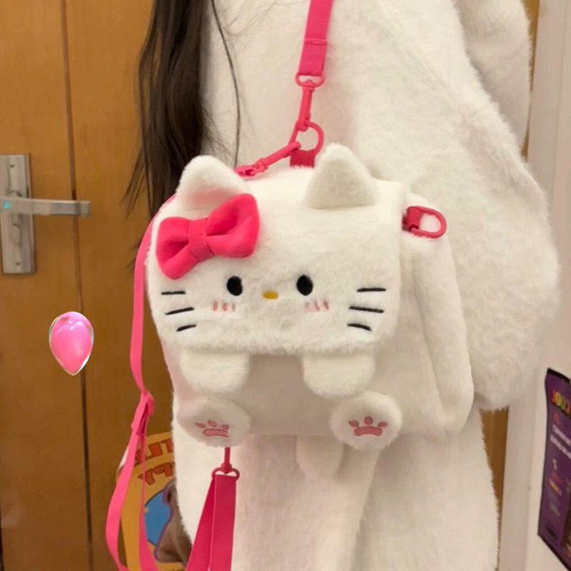 新款休闲包包女款今年流行斜挎包毛绒小背包可爱卡通凯蒂猫双肩包
