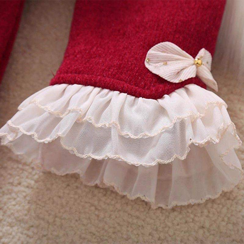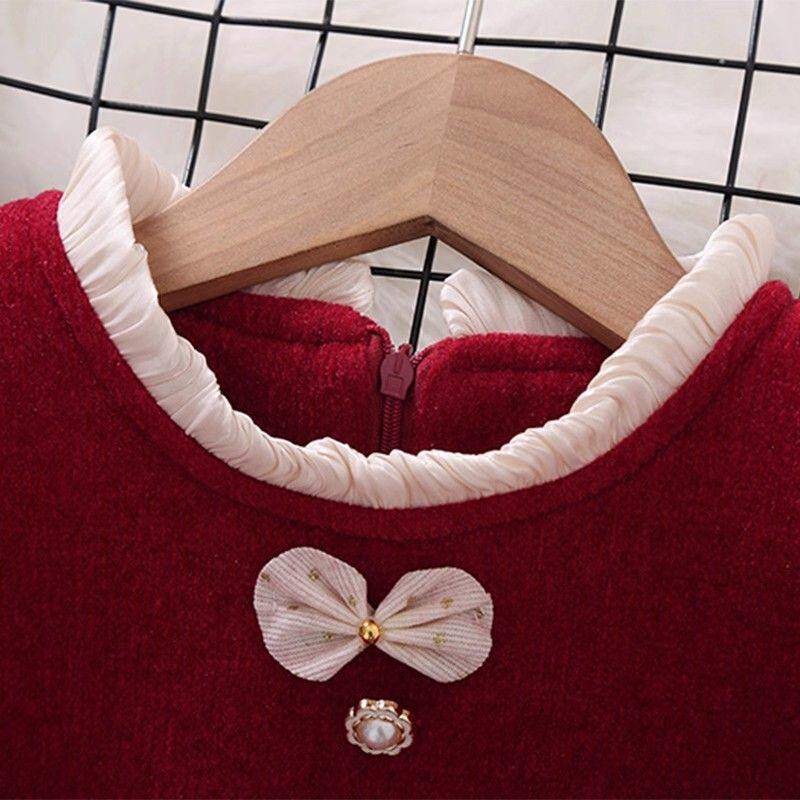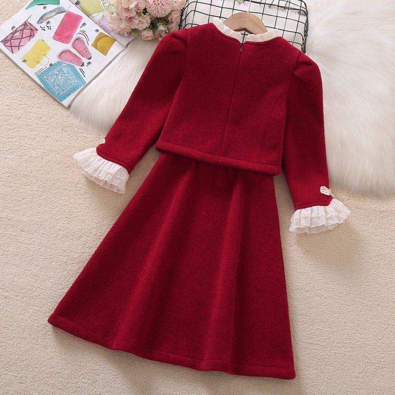 女童红色喜庆连衣裙2026新款冬季大童加绒加厚小香风外套年服套装