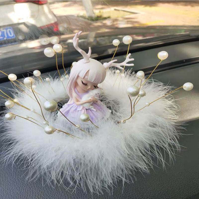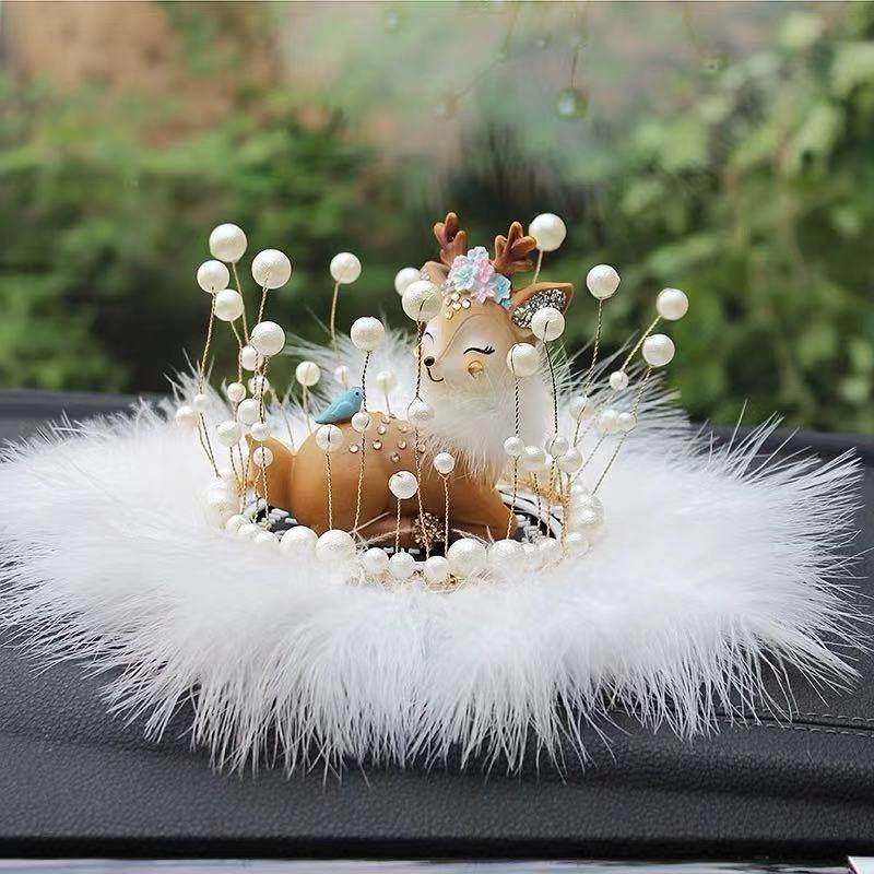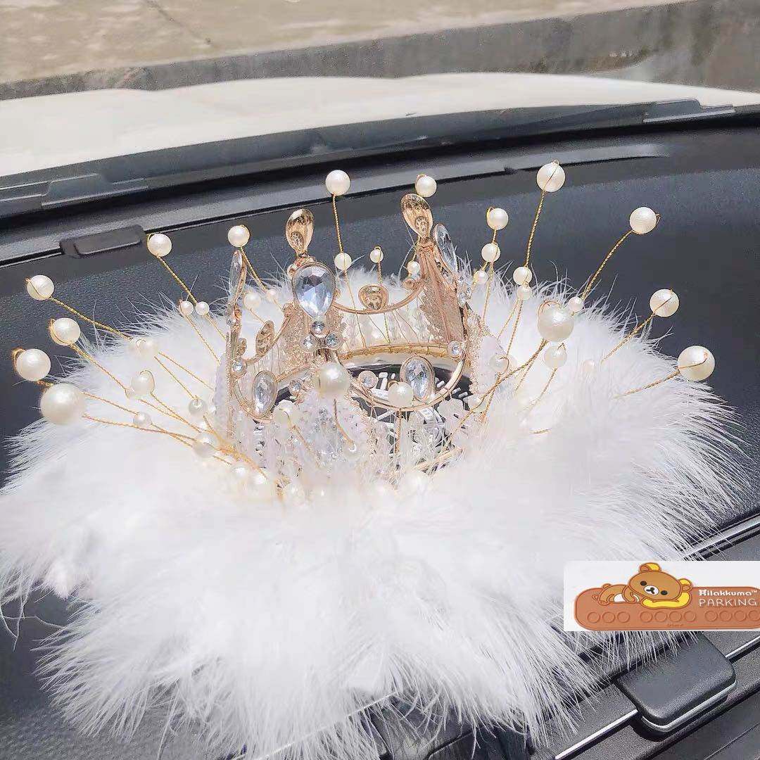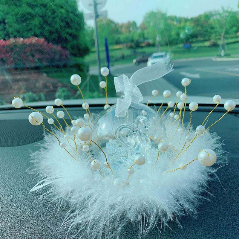 皇冠汽车摆件珍珠水晶天鹅创意个性潮女车内防滑垫中控台装饰羽毛