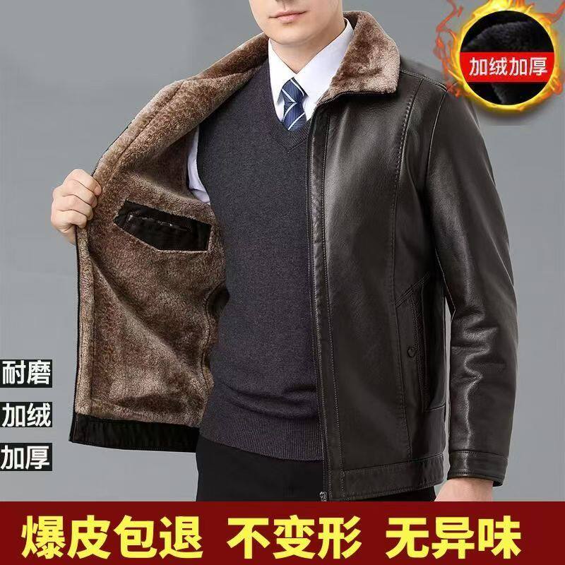 海宁羊皮真皮皮衣中老年男装休闲加绒爸爸薄款男士皮夹克外套新款
