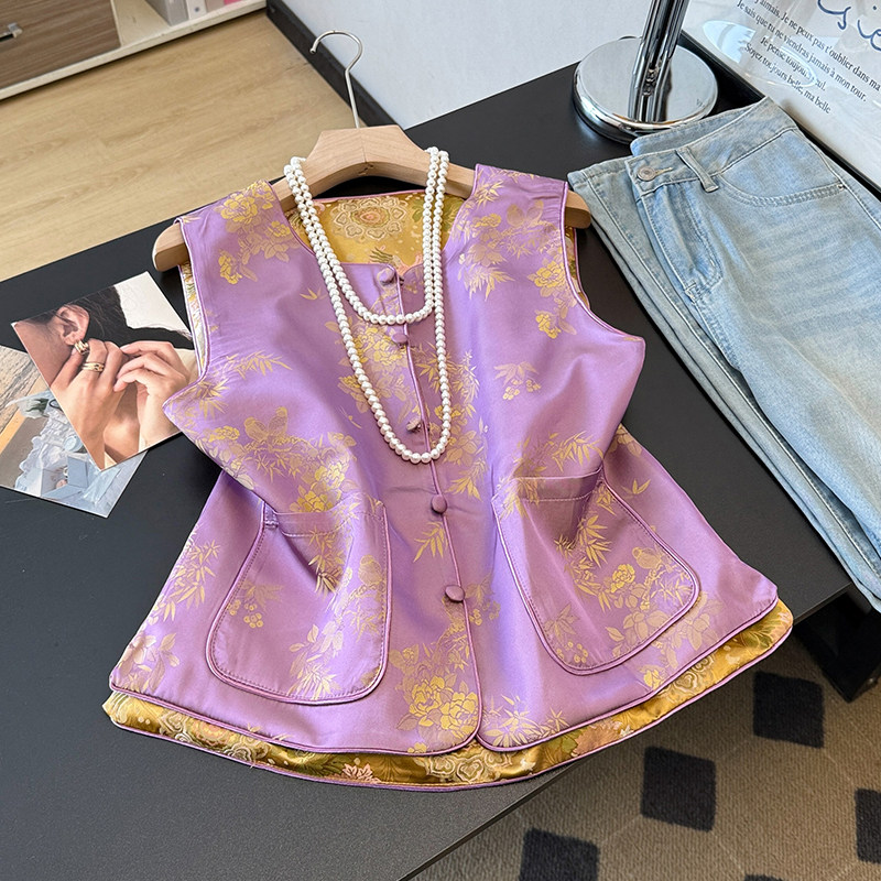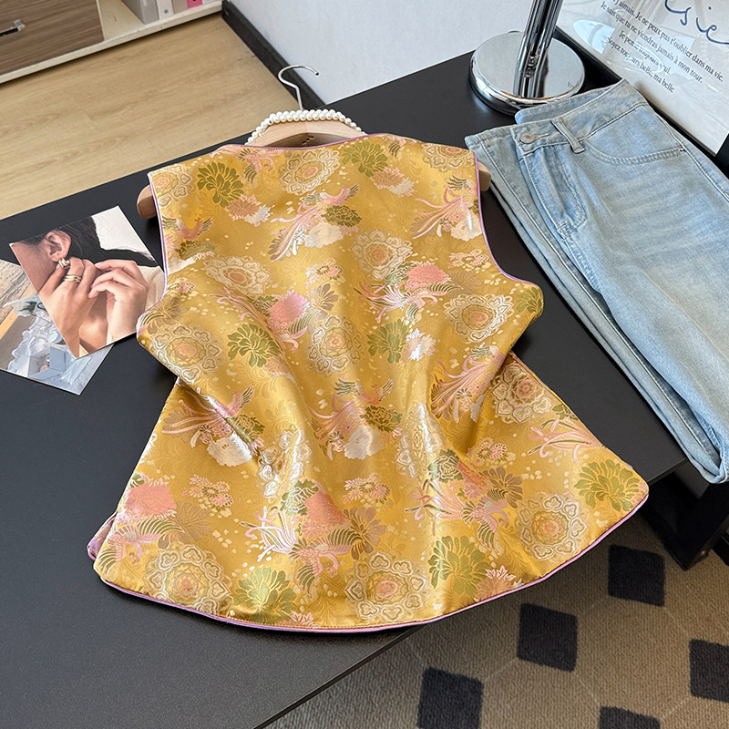 2026春季新款中式国风两面穿缎面重工提花改良复古坎肩马甲上衣女