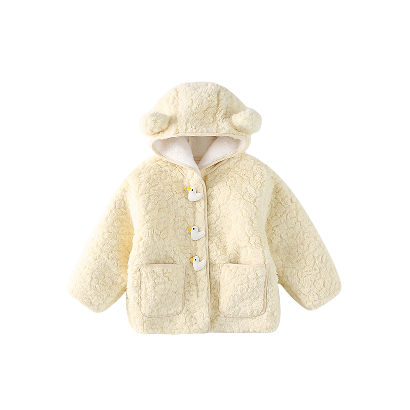 拉夏贝尔女童加绒外套秋冬季2026新款儿童中长款连帽羊羔绒毛毛衣