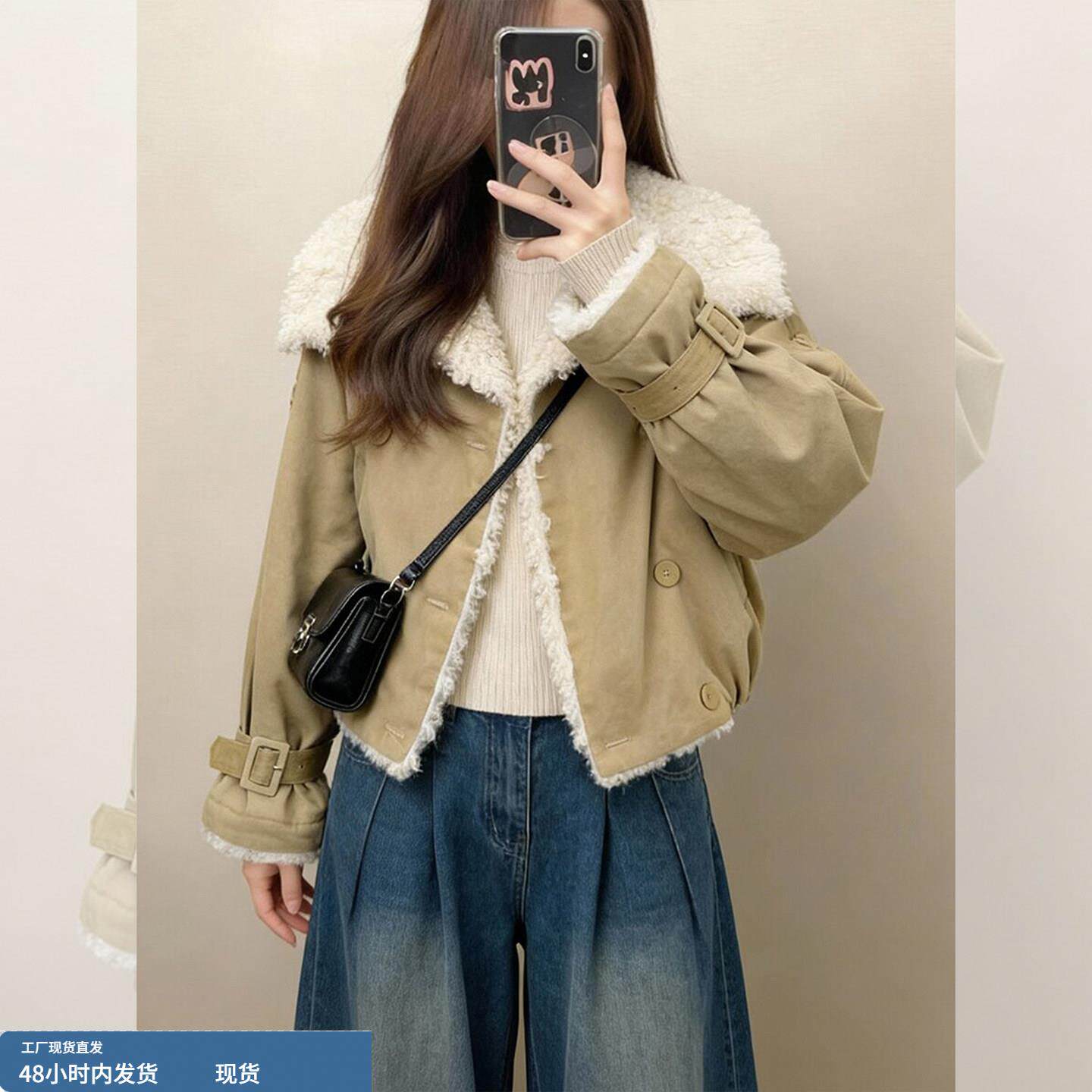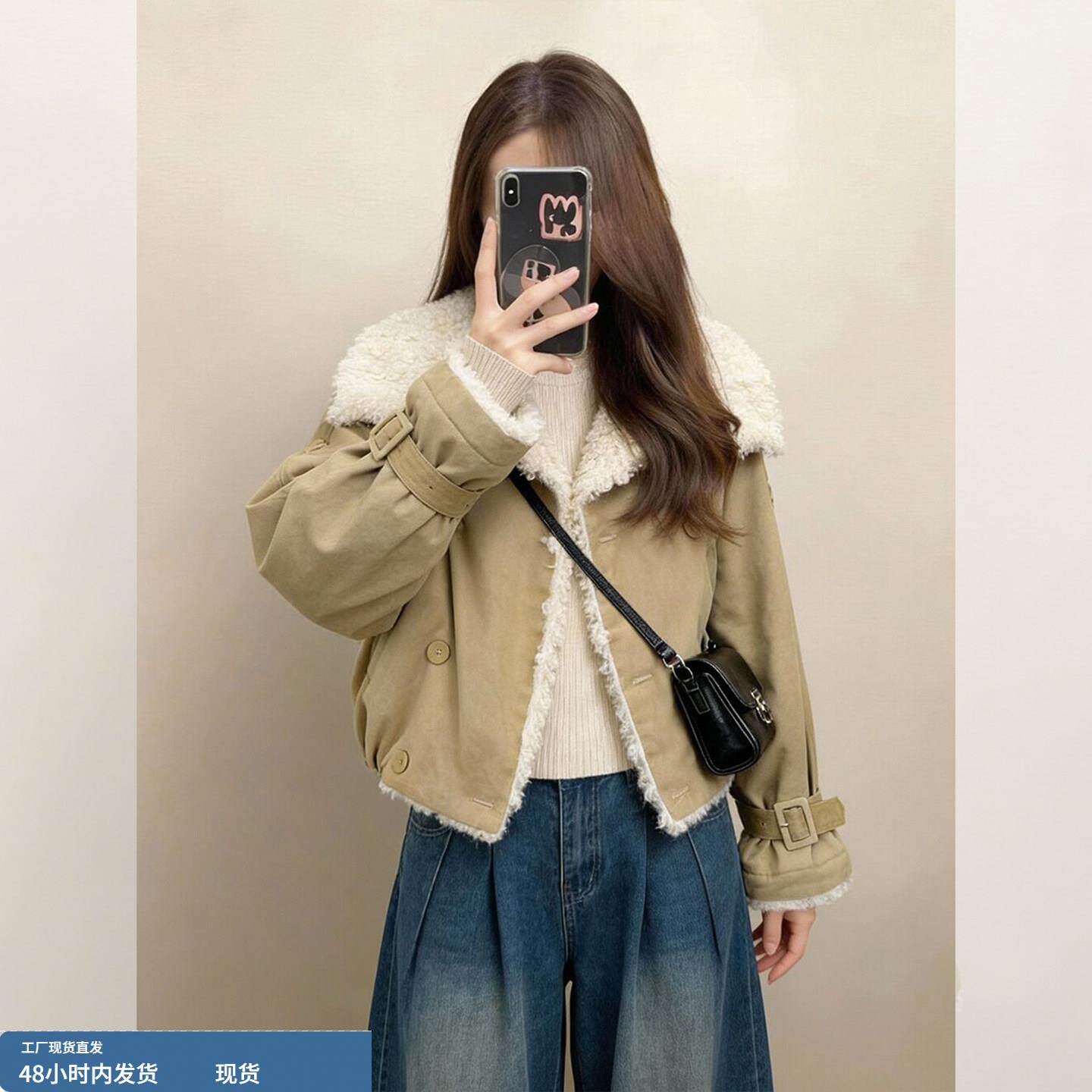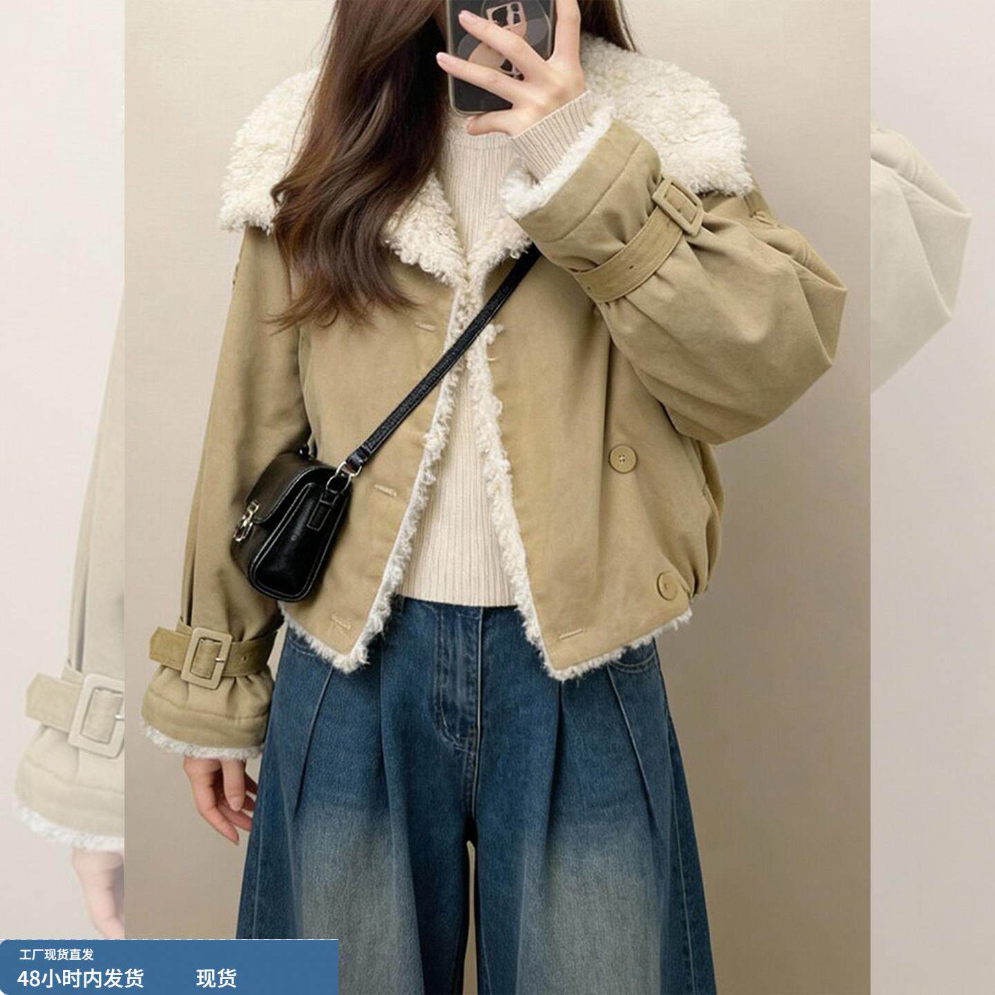2026新款今年流行爆款派克服加绒加厚小个子短款羊羔毛外套女冬季