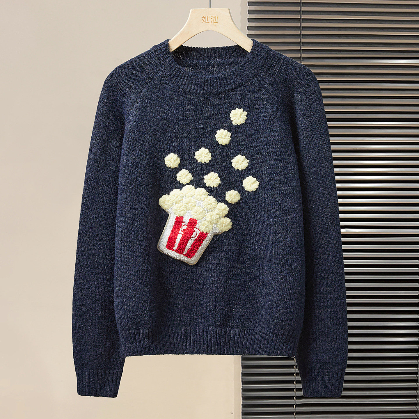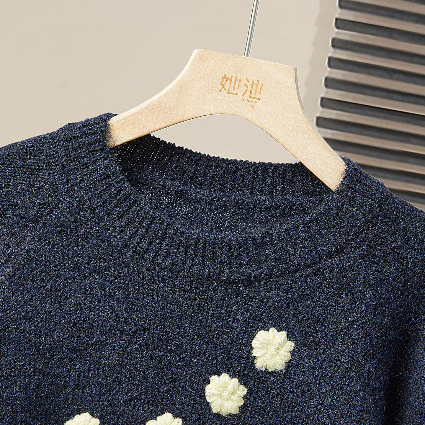 她池圆领毛衣2025冬装新款女装卡通减龄慵懒风插肩长袖套头上衣