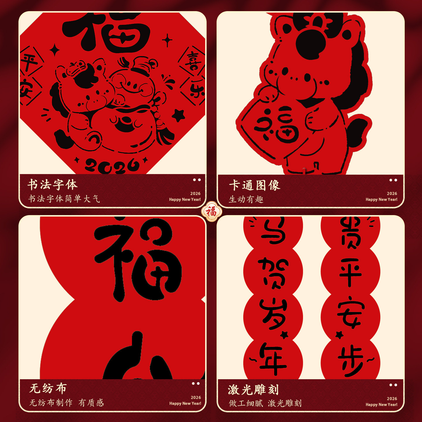 2026新款马年春联春节入户门联创意磁吸对联新年福字门贴过年装饰