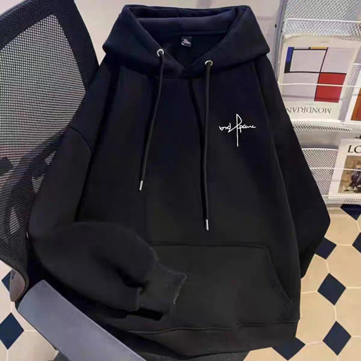 连帽卫衣男女童秋冬季加绒加厚百搭潮牌字母印花美式学生上衣外套