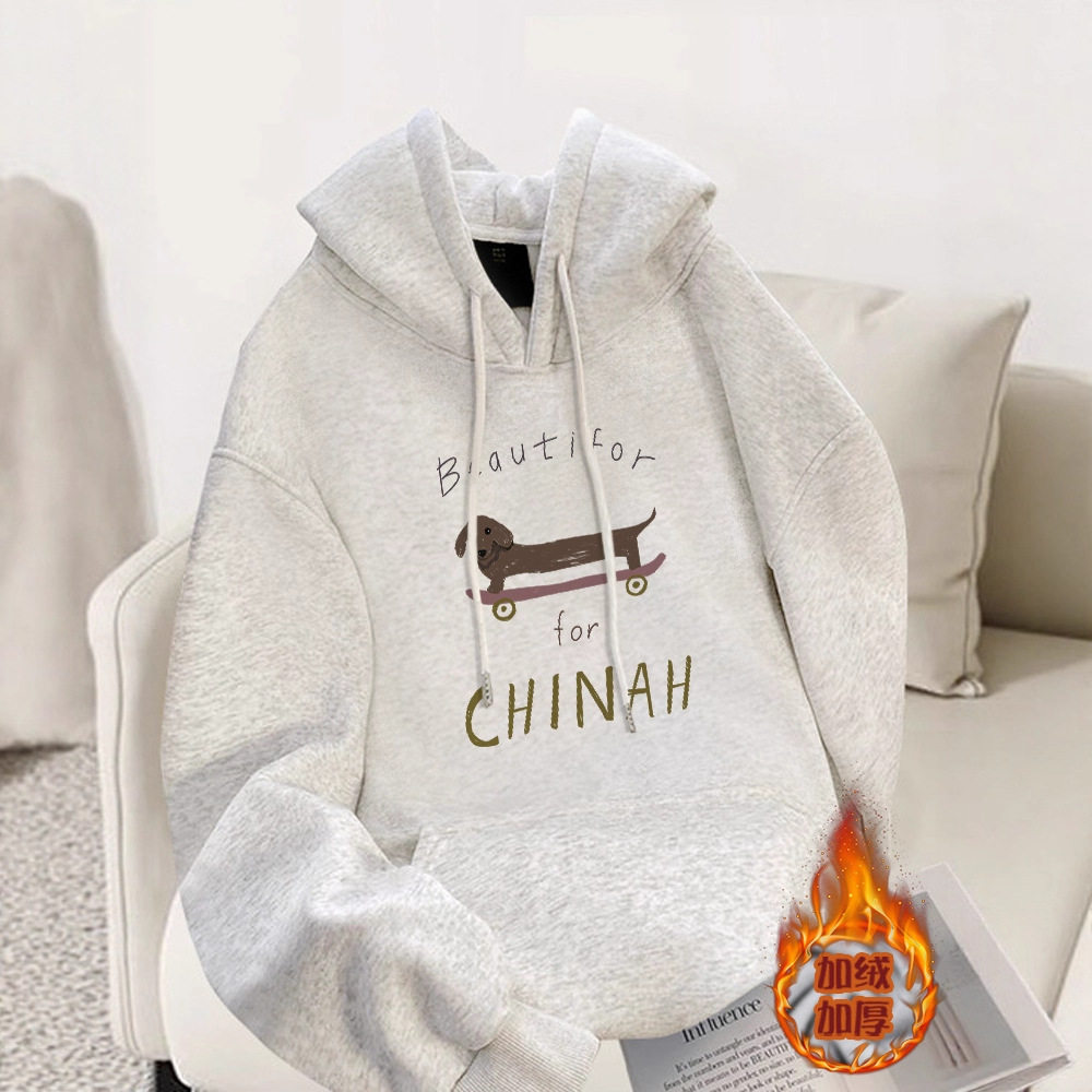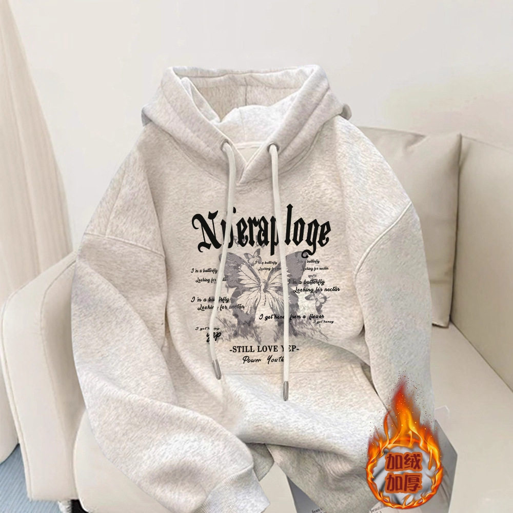 灰色连帽卫衣女款2025秋冬新款宽松大码外套加绒加厚长袖上衣