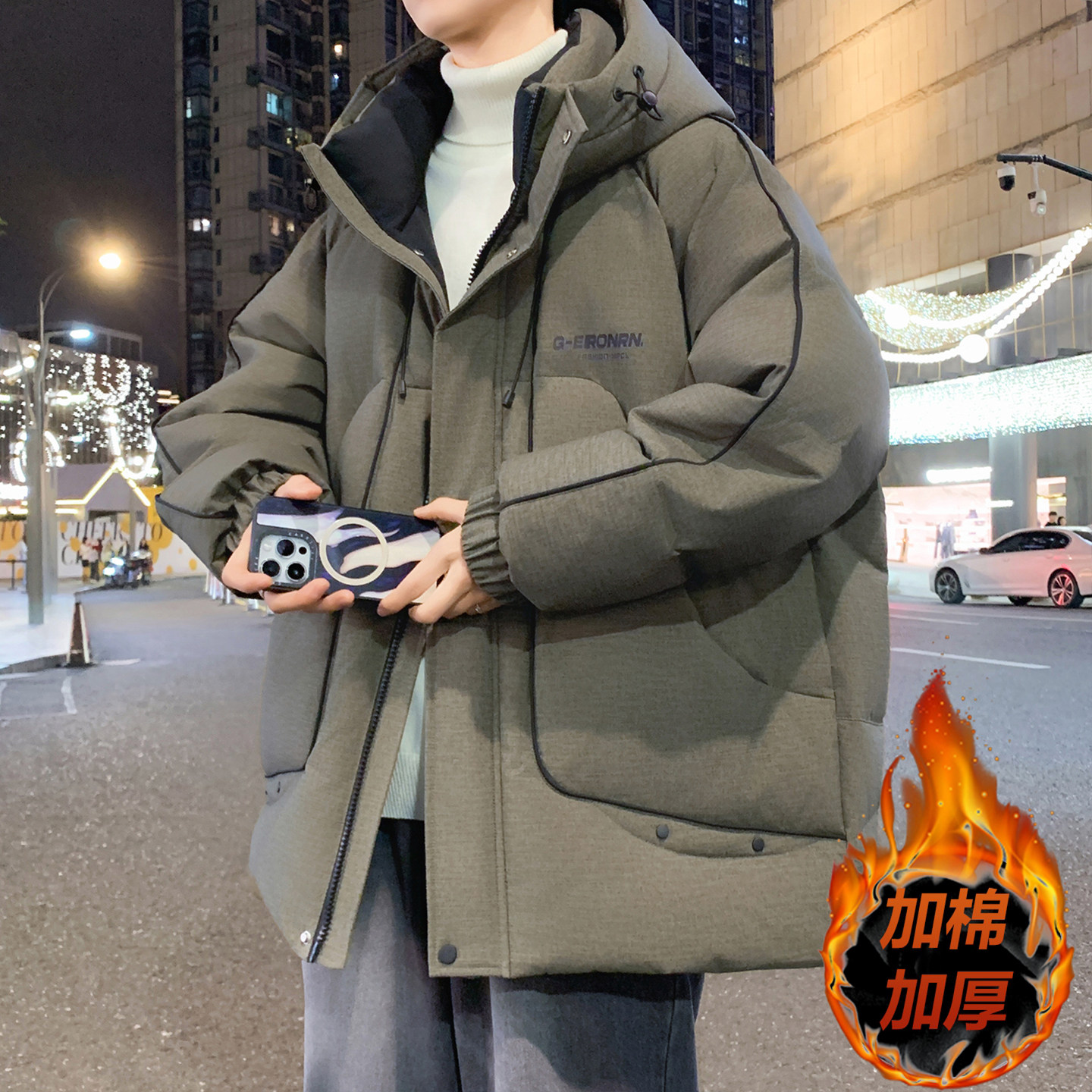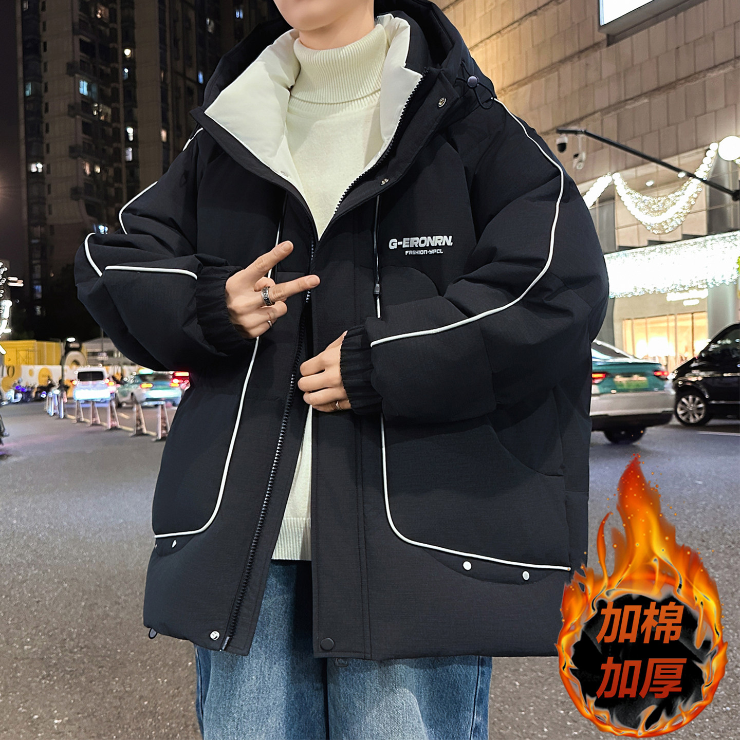 冬季新款青少年连帽羽绒棉服男初中高中学生帅气棉衣外套大童男装