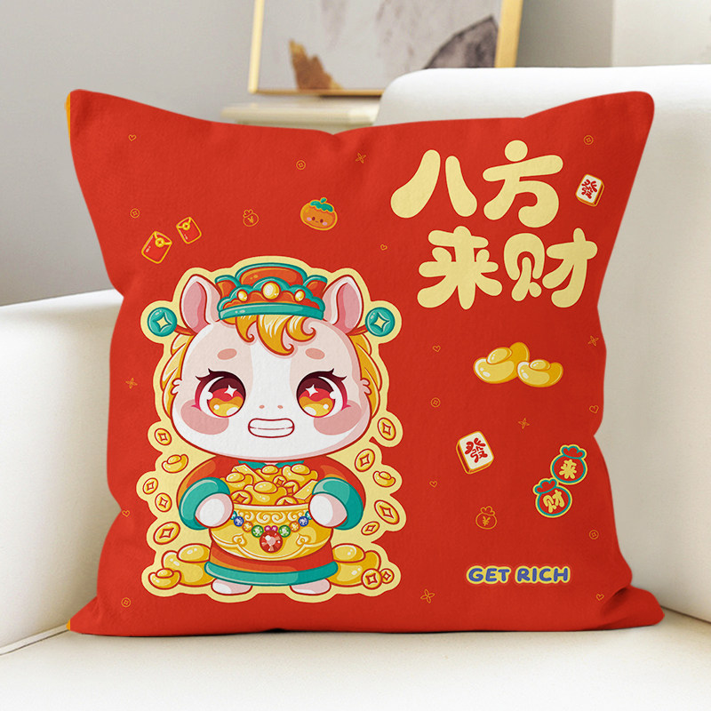 新年马年抱枕吉祥抱枕2025毛绒抱枕定制靠垫被子毯子两用定制logo