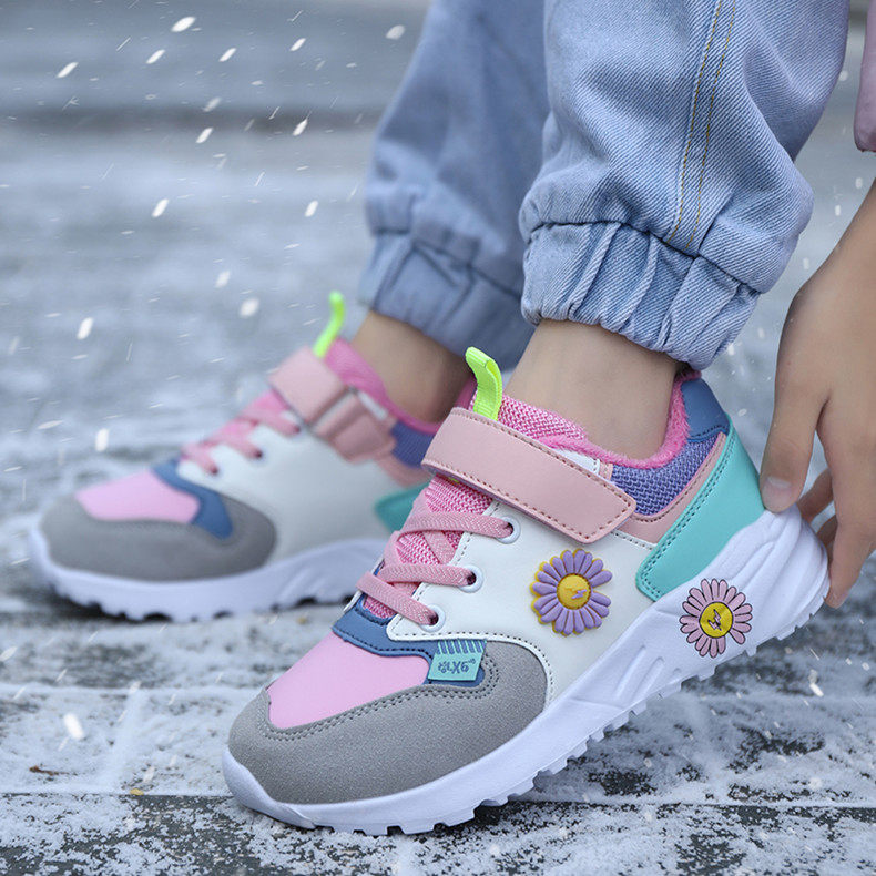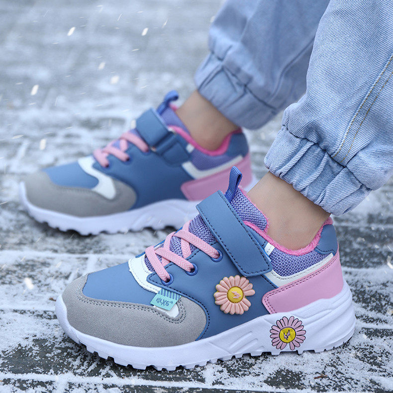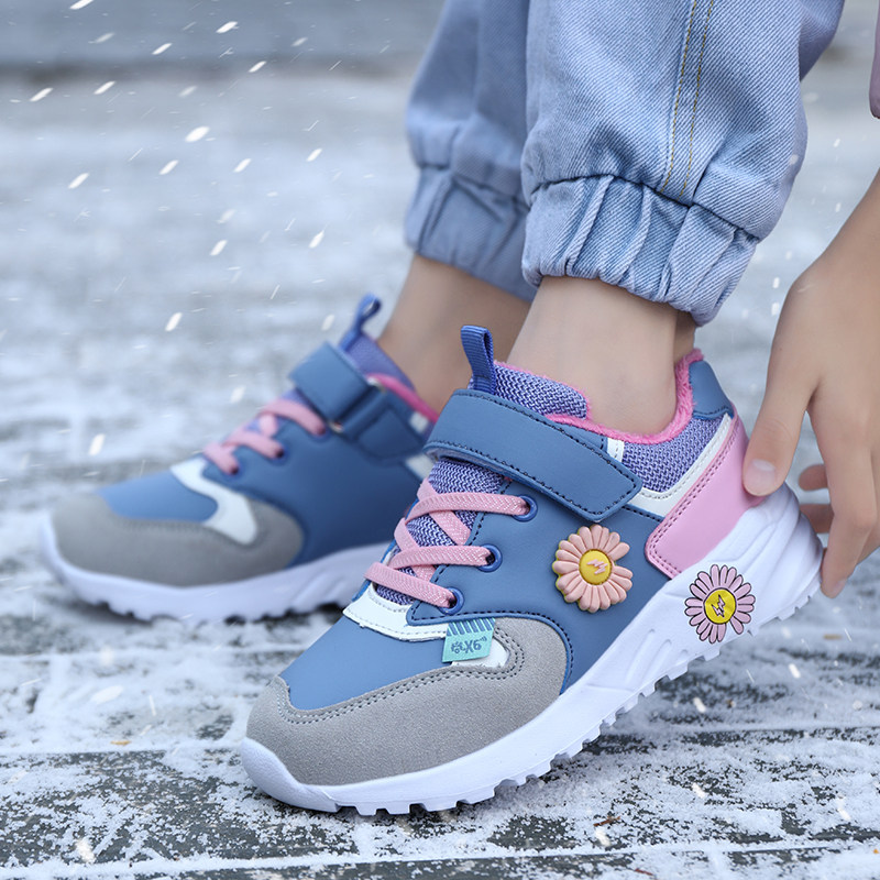 女童鞋子秋冬款小雏菊女孩中大童运动鞋加绒保暖公主棉鞋皮面冬天
