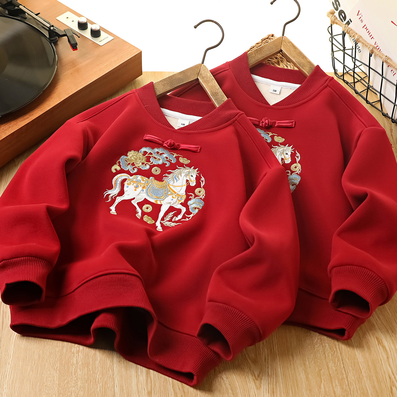 新年装男童立领加绒卫衣2026马年保暖上衣中大童加厚新中式拜年服