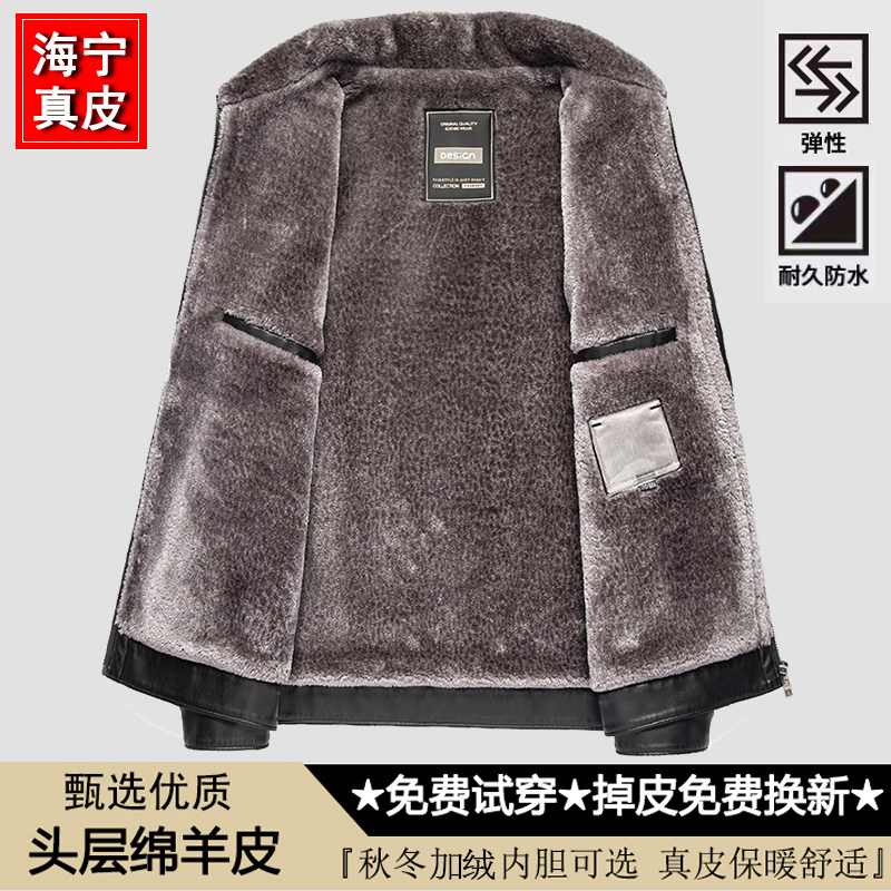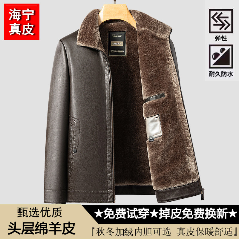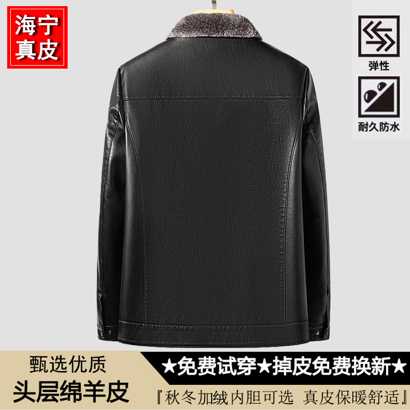 海宁真皮皮衣外套男秋冬加绒加厚夹克中年皮毛一体爸爸装休闲男装
