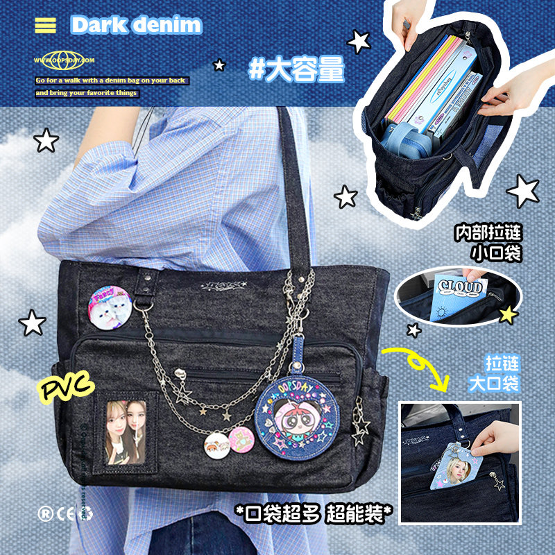 OOPSDAY牛仔痛包大容量日常通勤包包原创设计感小众斜挎包透明大痛窗扎痛包二次元追星娃包女款托特包单肩包