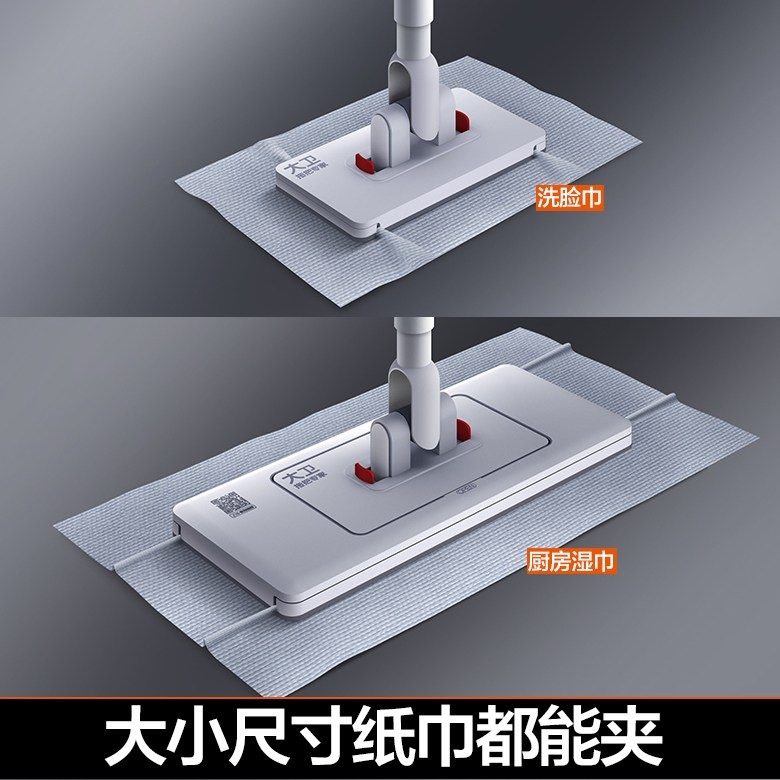 大卫平板拖把2025新款懒人夹布阔面板拖把家用洗脸巾拖布干湿两用