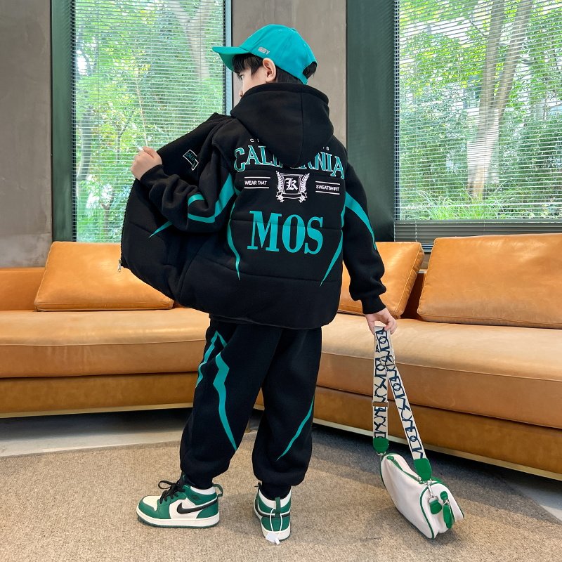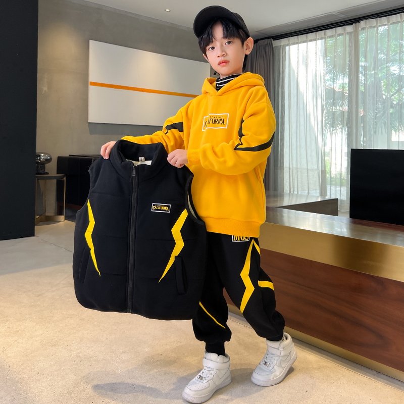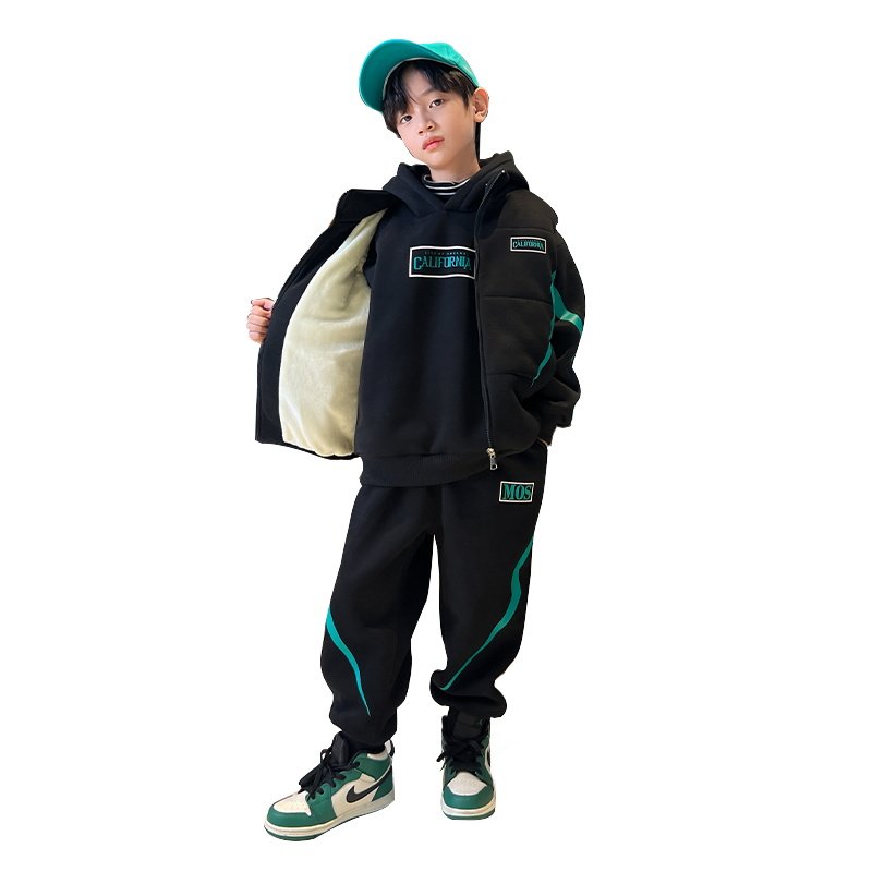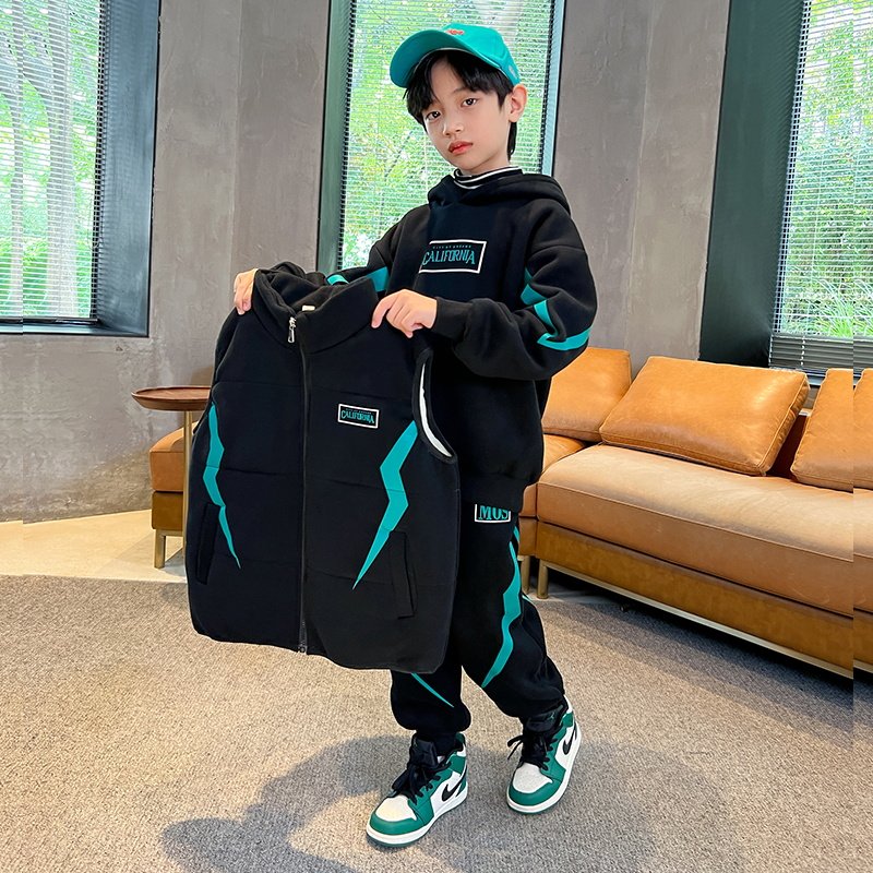 儿童装男童冬装套装2025新款韩版加绒加厚男孩秋冬季卫衣三件套潮