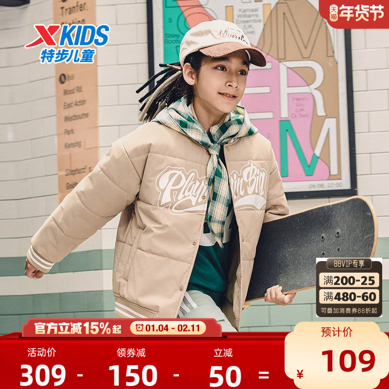 特步童装二童保暖棉服2026年秋冬新款男童外套中大童秋装夹克上衣