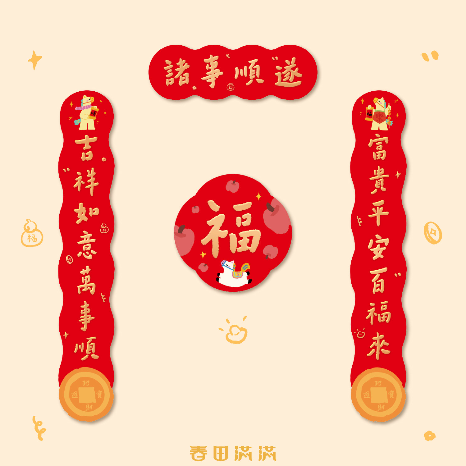 马年对联2026新款春联入户门贴春节过年装饰创意高档磁吸福字门联