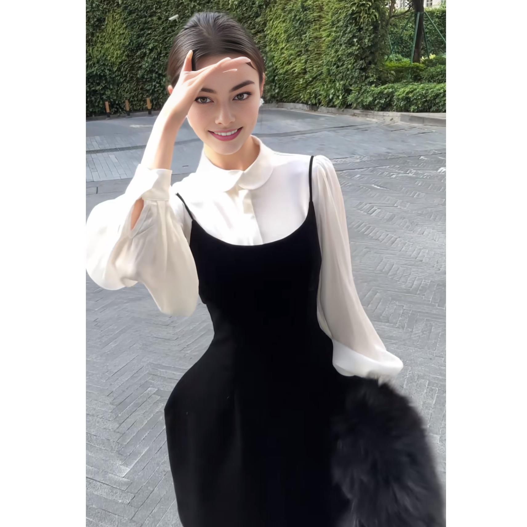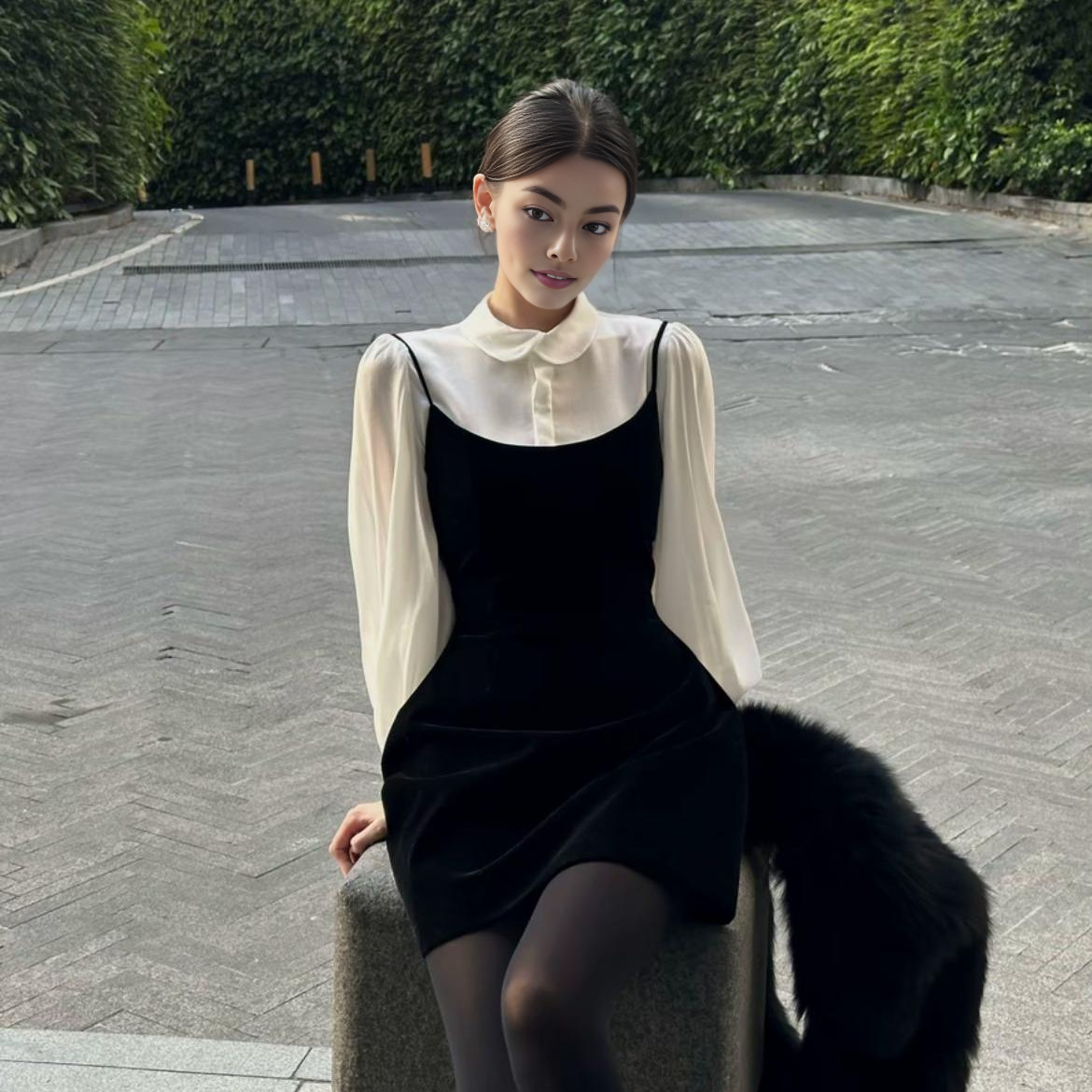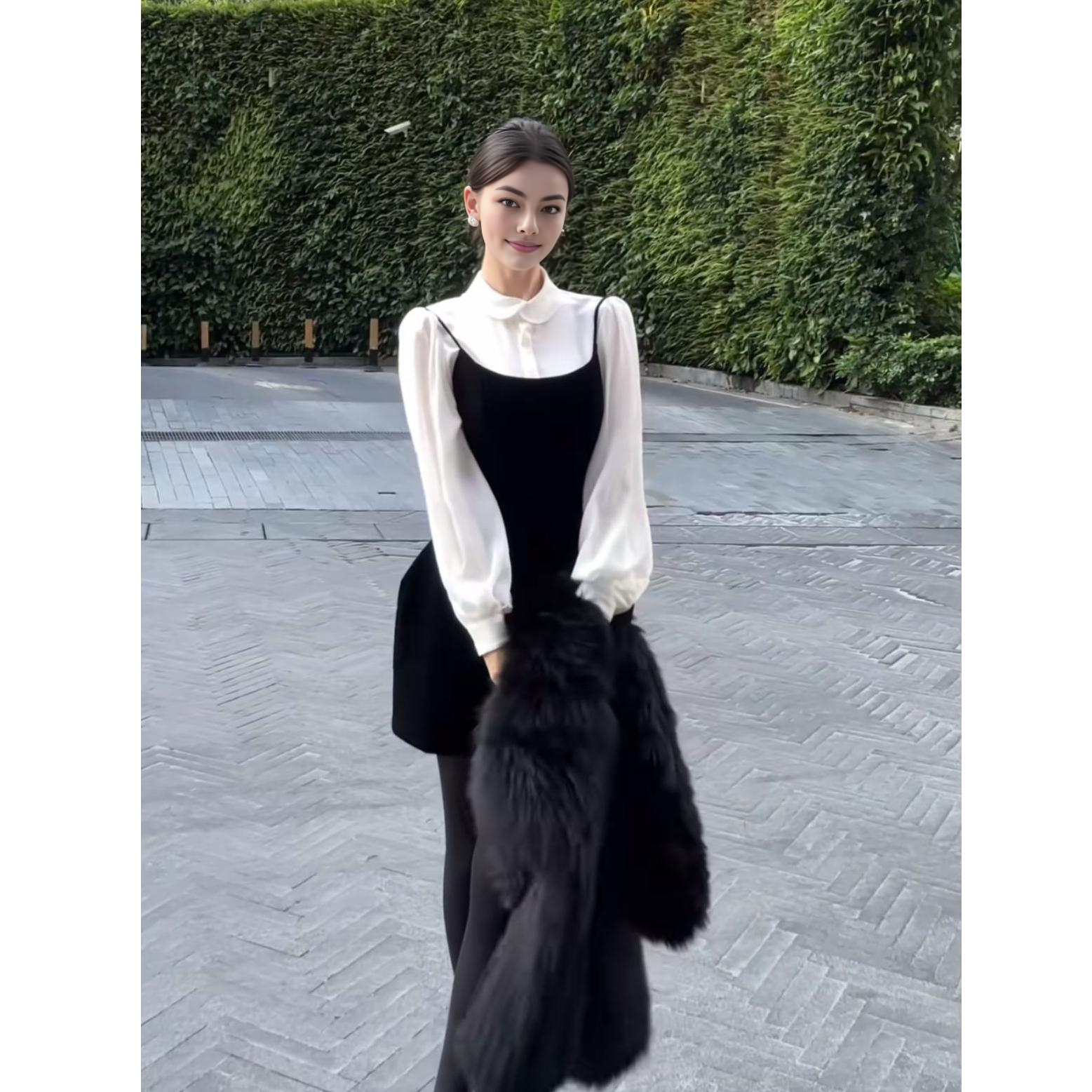 富家千金2026春季新款高级感气质内搭衬衫上衣+吊带连衣裙套装女