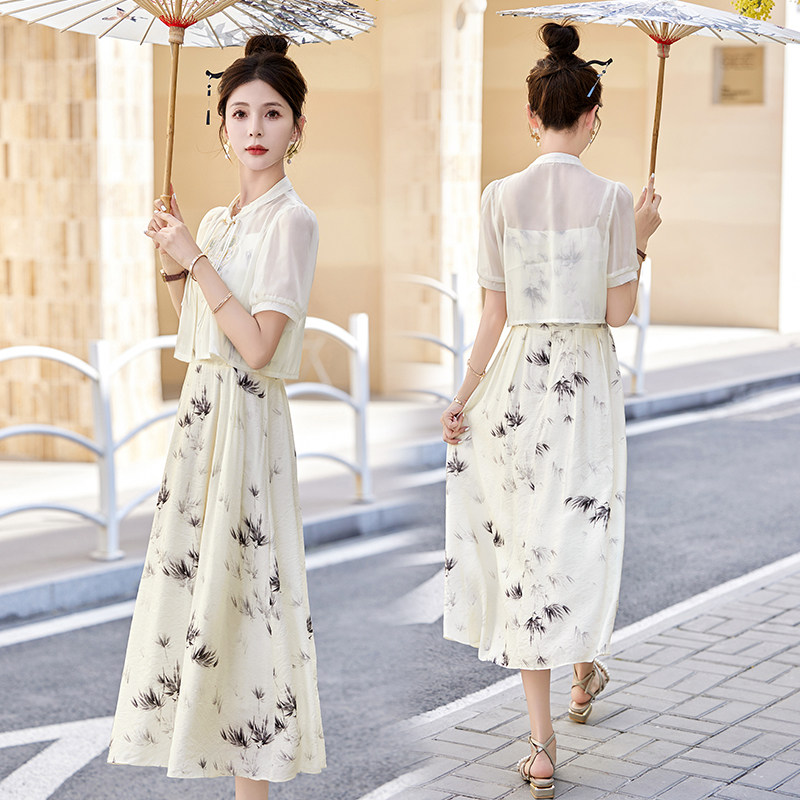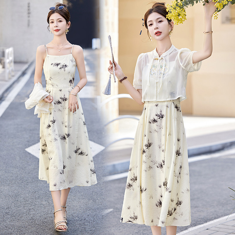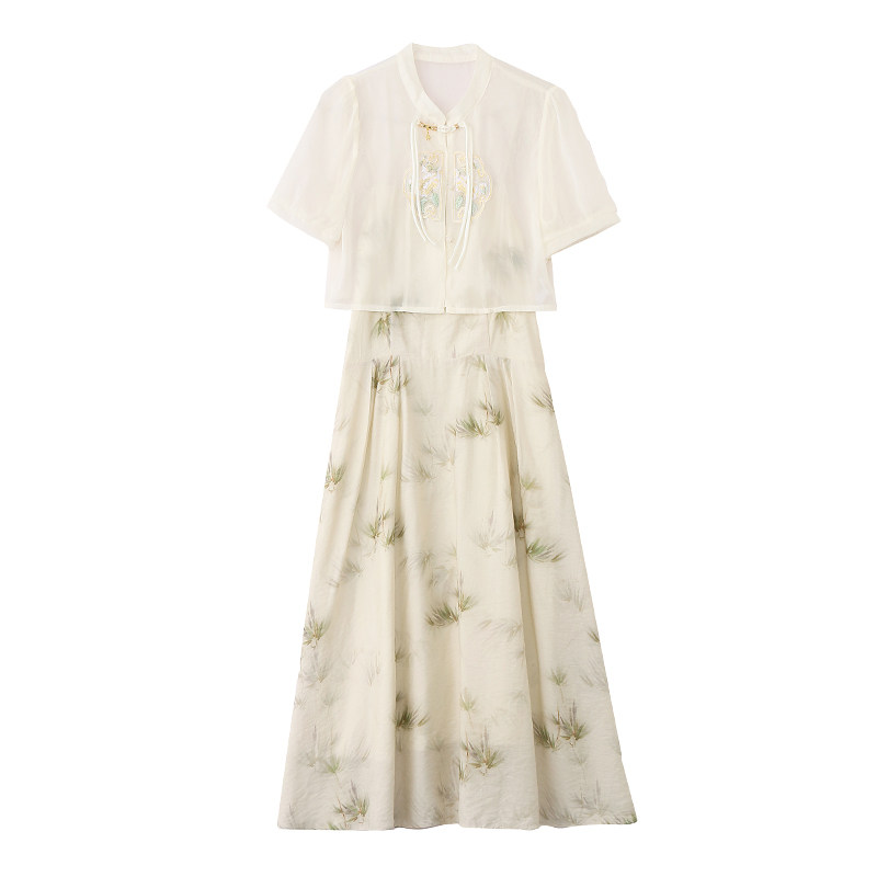 春装女款2026年新款高级感夏季新款新中式国风刺绣连衣裙套装
