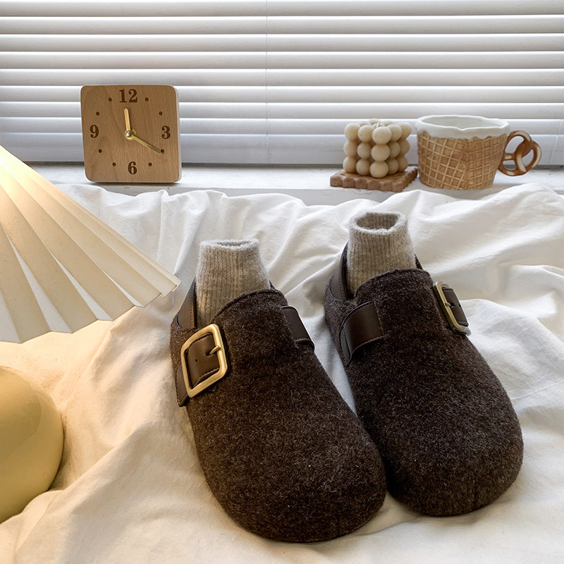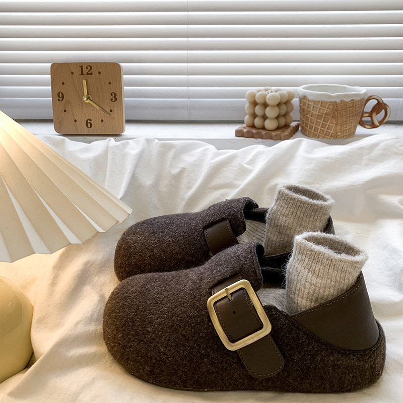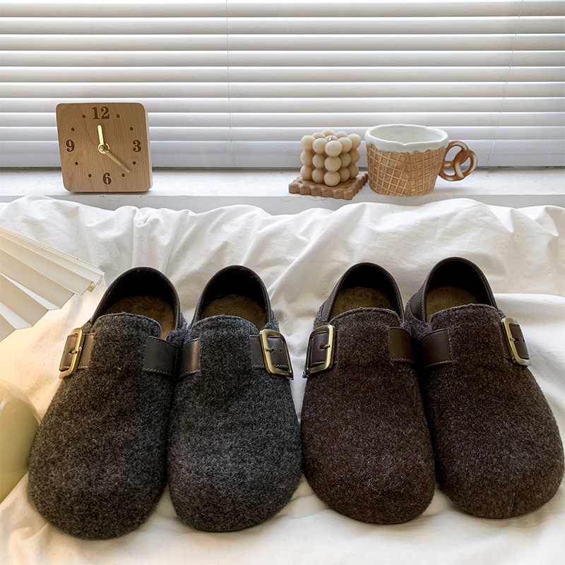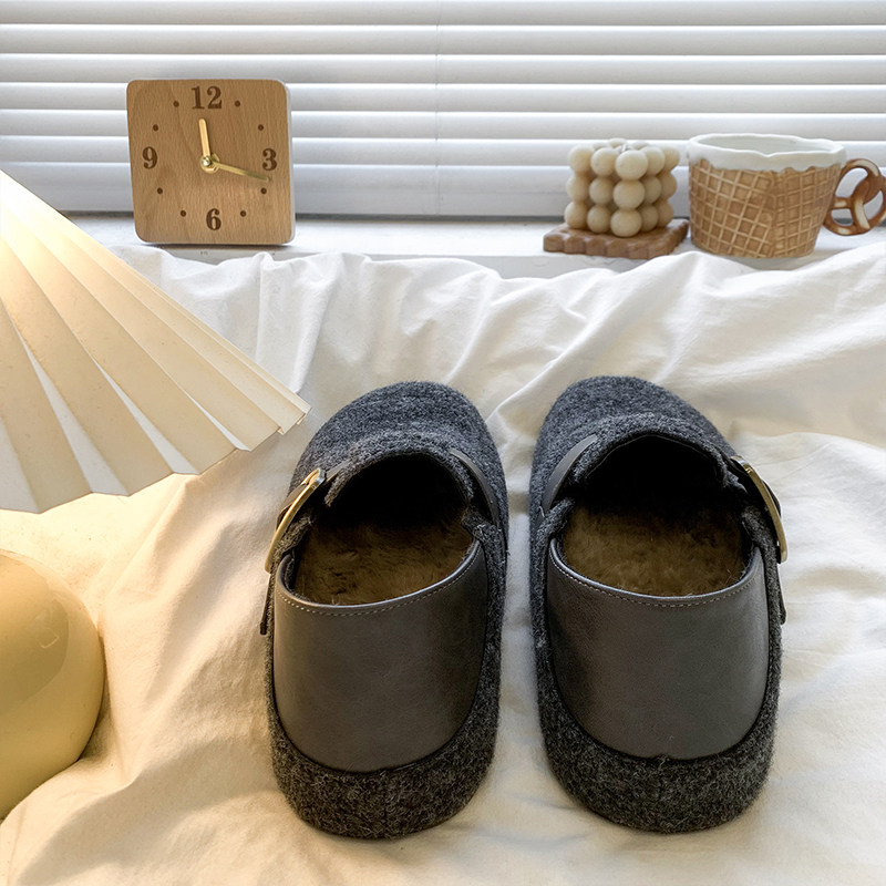 软底高级感灰色勃肯鞋女2025秋冬新款两穿加绒包头半拖鞋内增高