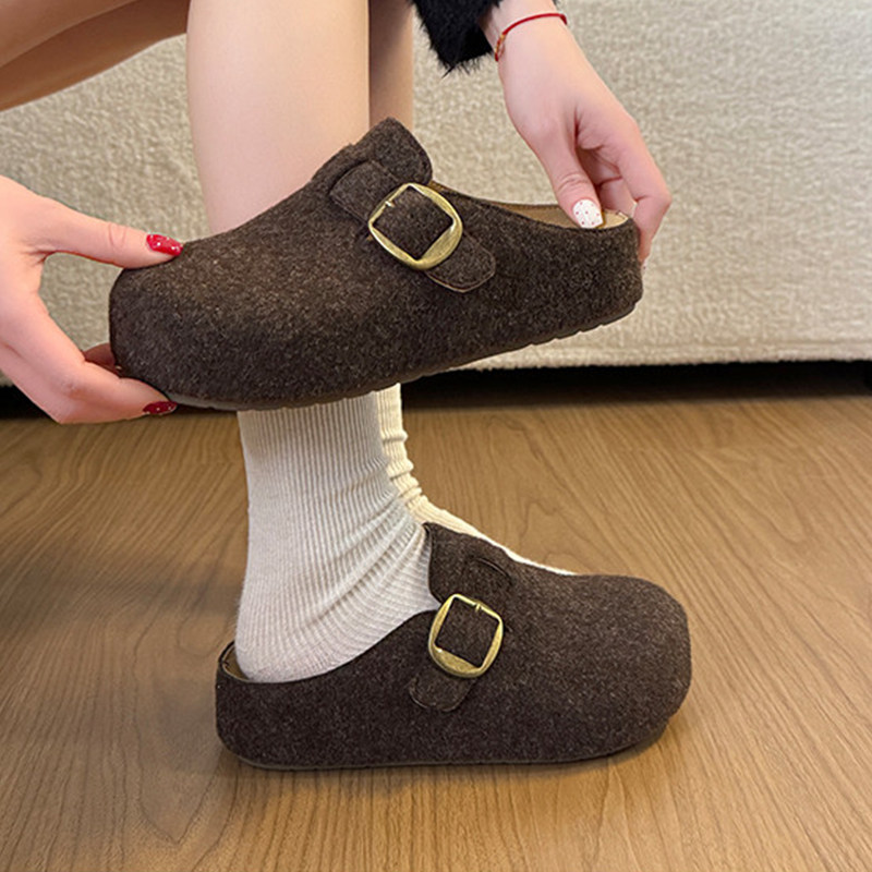 灰色毛毡勃肯鞋包头半拖鞋女外穿2026新款春季内增高厚底博肯凉拖
