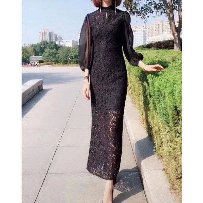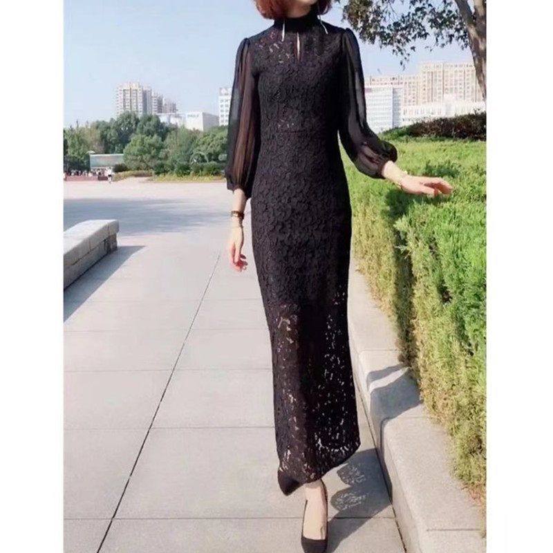 强9102大爱美依缘2025春夏季新款韩版时尚黑色修身长款连衣裙女款