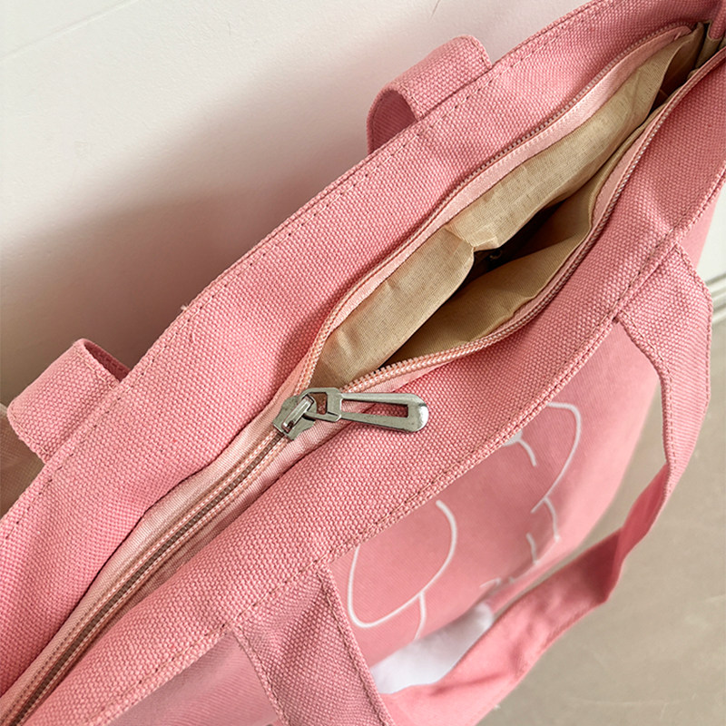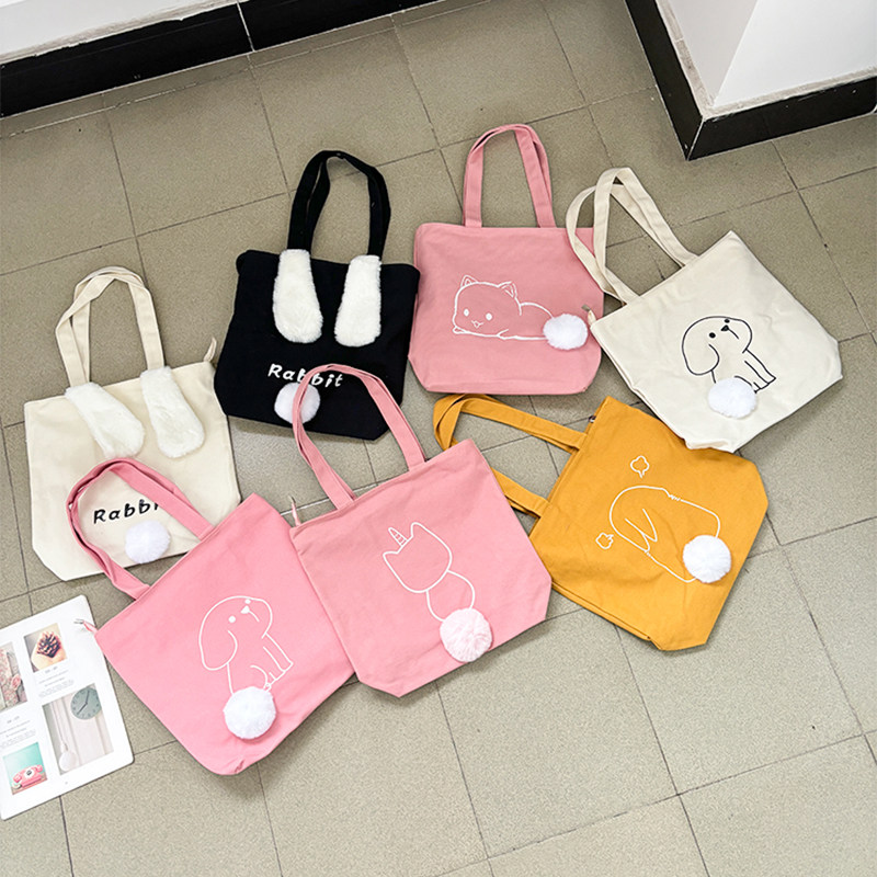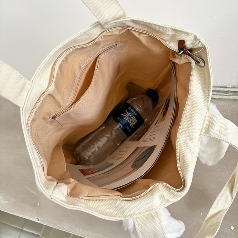 单肩包带拉链可爱立体毛球帆布袋大容量百搭托特包通勤上课购物袋