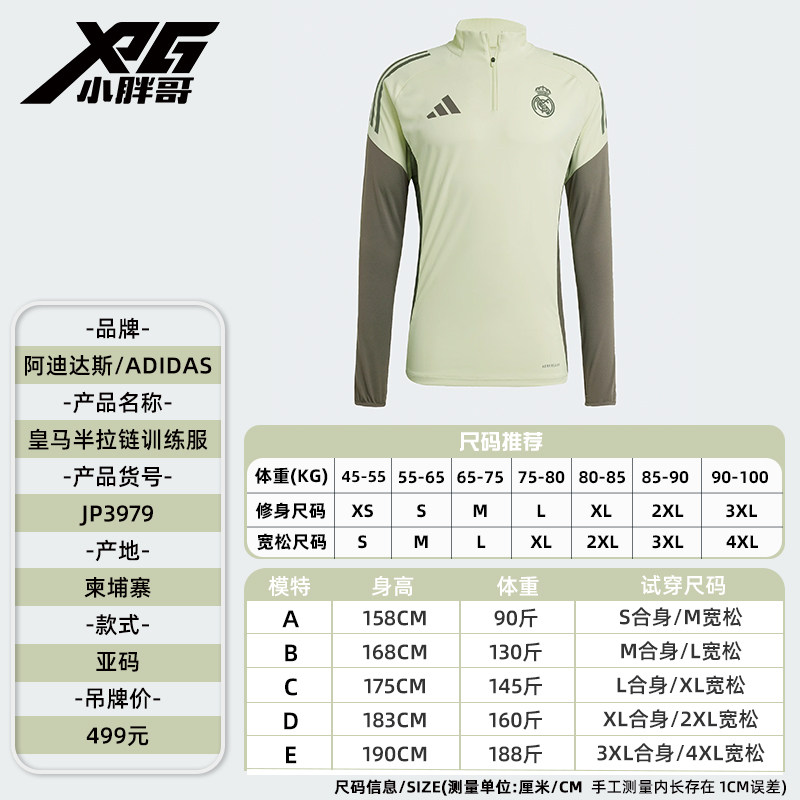 小胖哥XPG阿迪达斯25-26皇马赛前训练运动休闲长袖半拉链足球服男