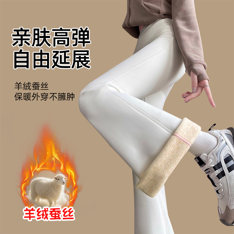 微喇鲨鱼裤女外穿冬季白色加绒裤子加厚保暖小个子打底瑜伽喇叭裤