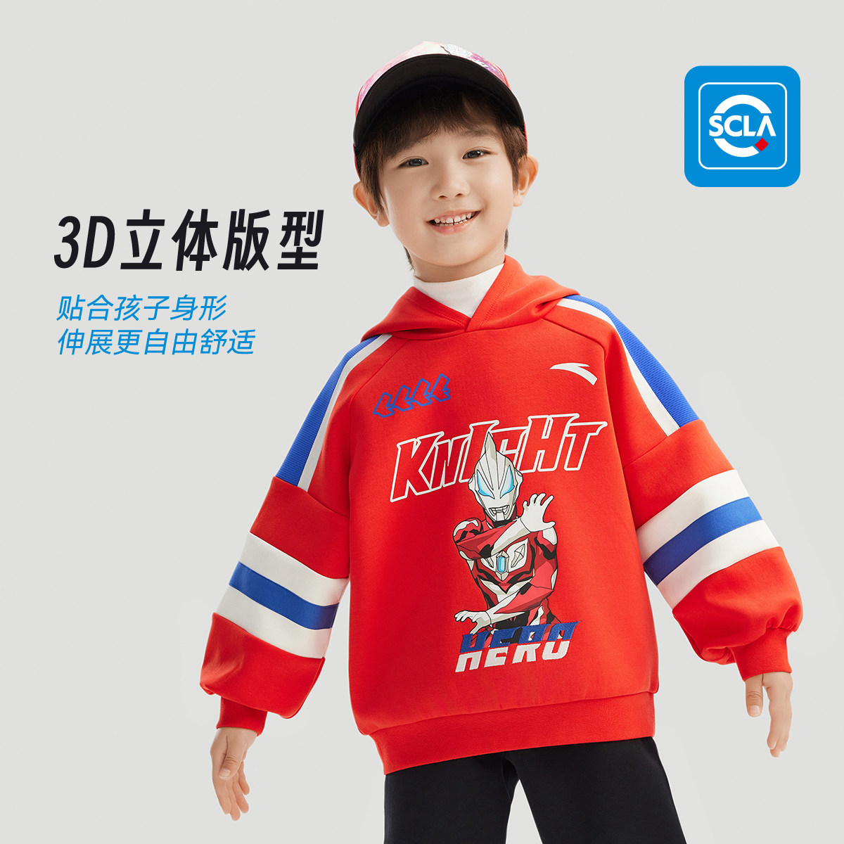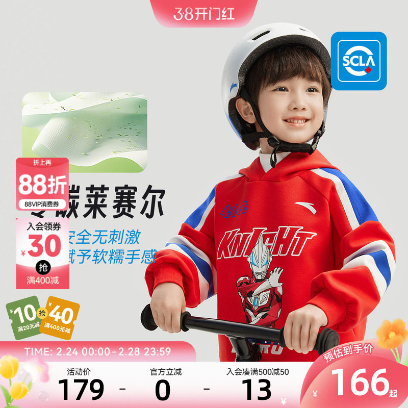 奥特曼IP|安踏儿童卫衣男童宝宝连帽套头衫2025春款小童萌趣上衣