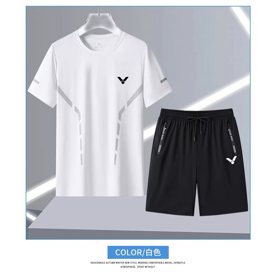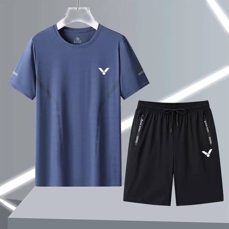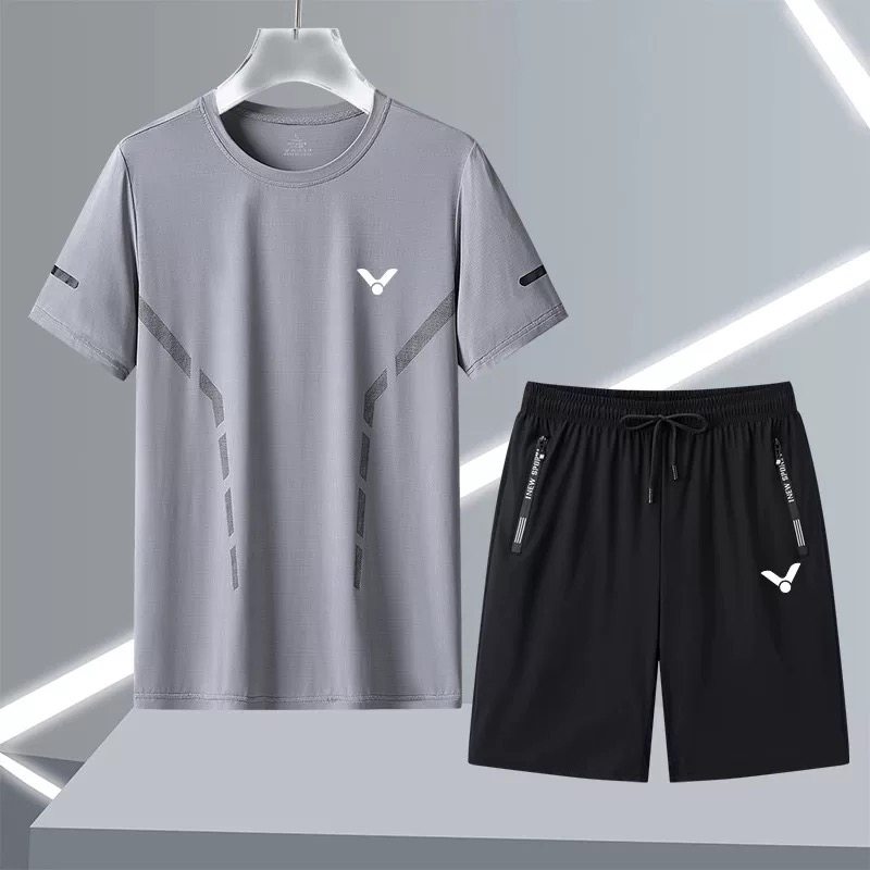 男女同款夏季运动套装男跑步健身宽松休闲冰丝速干羽毛球服两件套