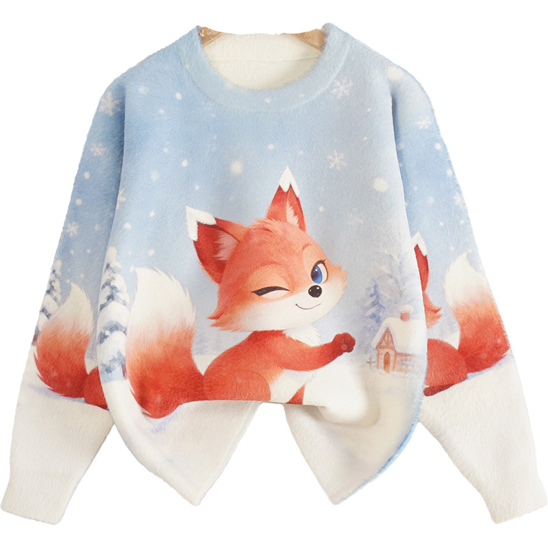女童卡通蓝色百搭针织衫2026秋冬新款圆领加厚保暖长袖毛衣打底衫