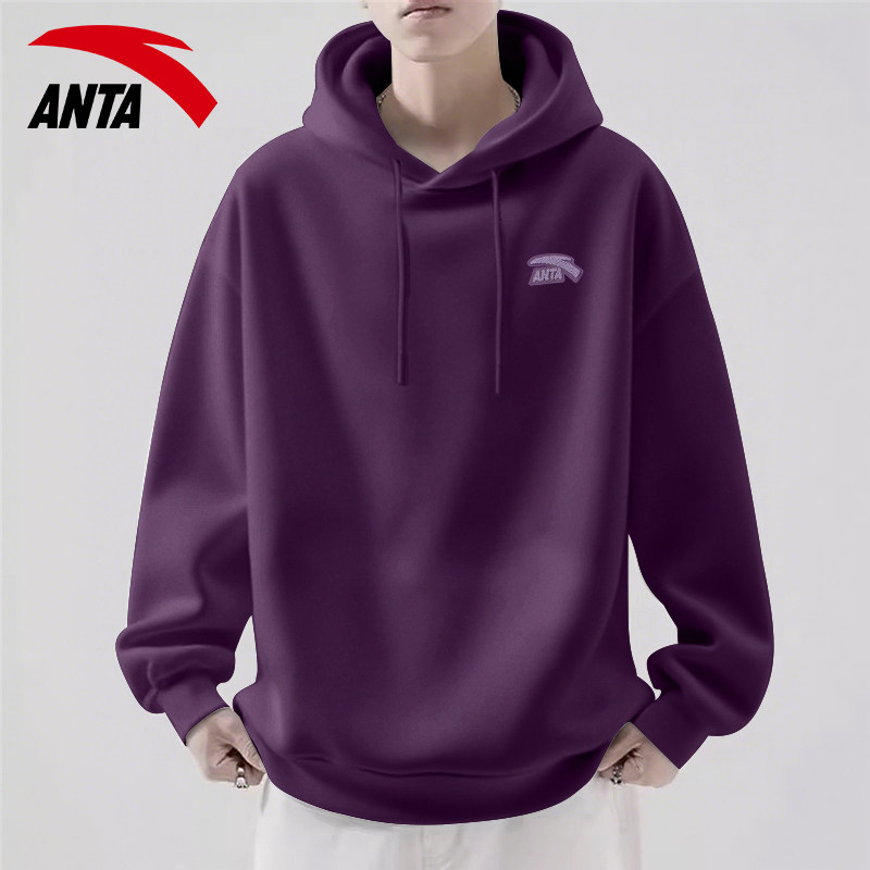 安踏连帽卫衣男款长袖2026春季新款灰色宽松休闲上衣百搭刺绣外套