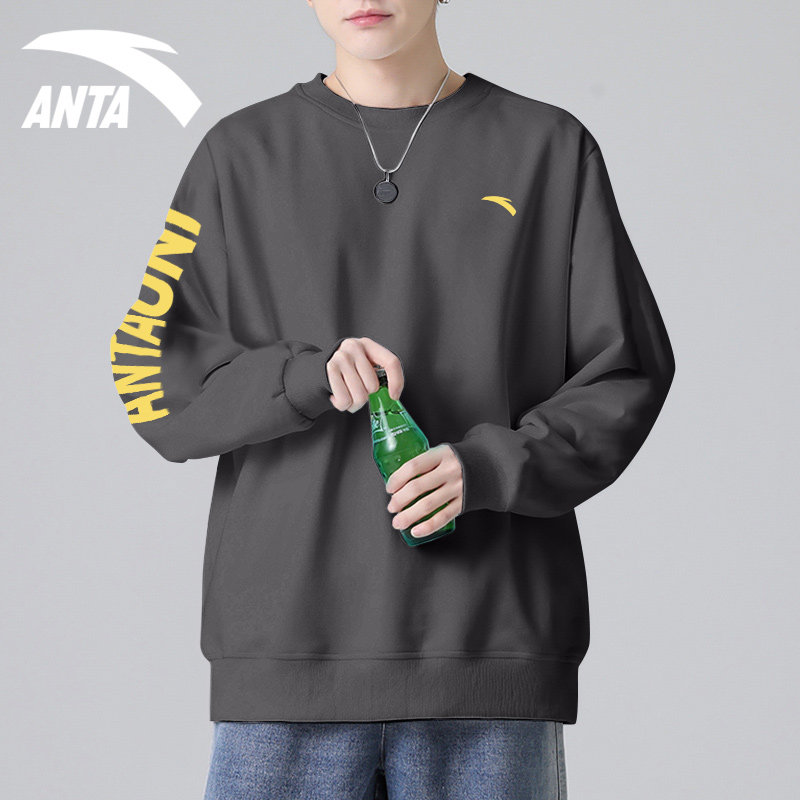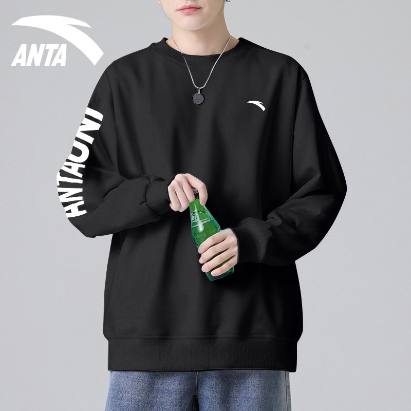 安踏卫衣男款官网旗舰春秋长袖白色t恤青少年宽松套头衫运动上衣