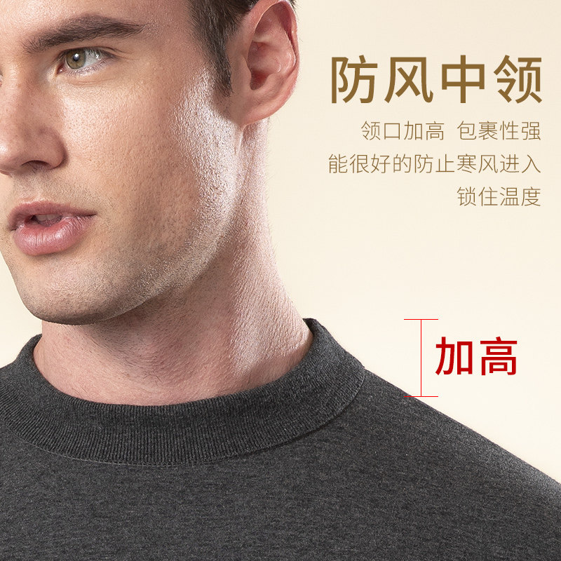 七匹狼男士保暖内衣套装加绒加厚冬季中老年棉毛衫半高领防寒男款