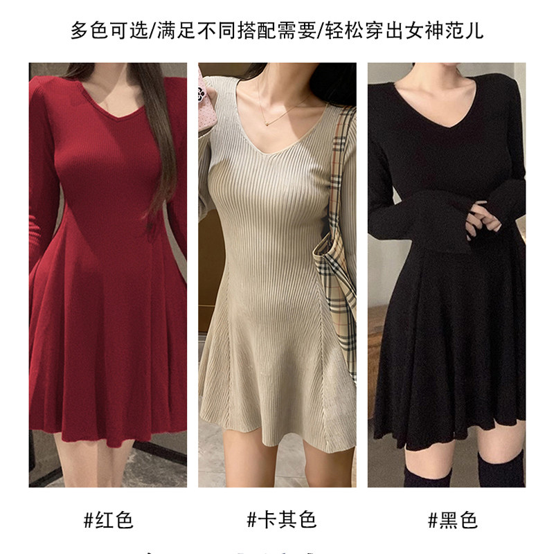 红色连衣裙女性感针织轻奢高级感秋冬短款毛衣裙子长袖新款圣诞节