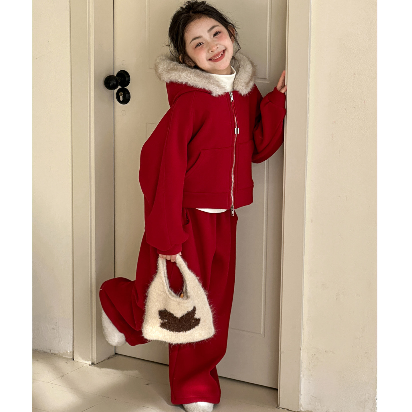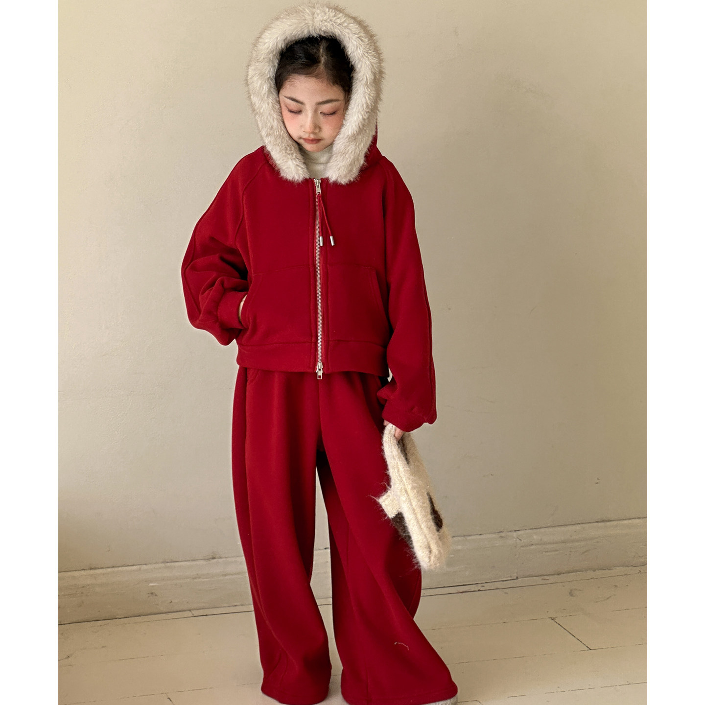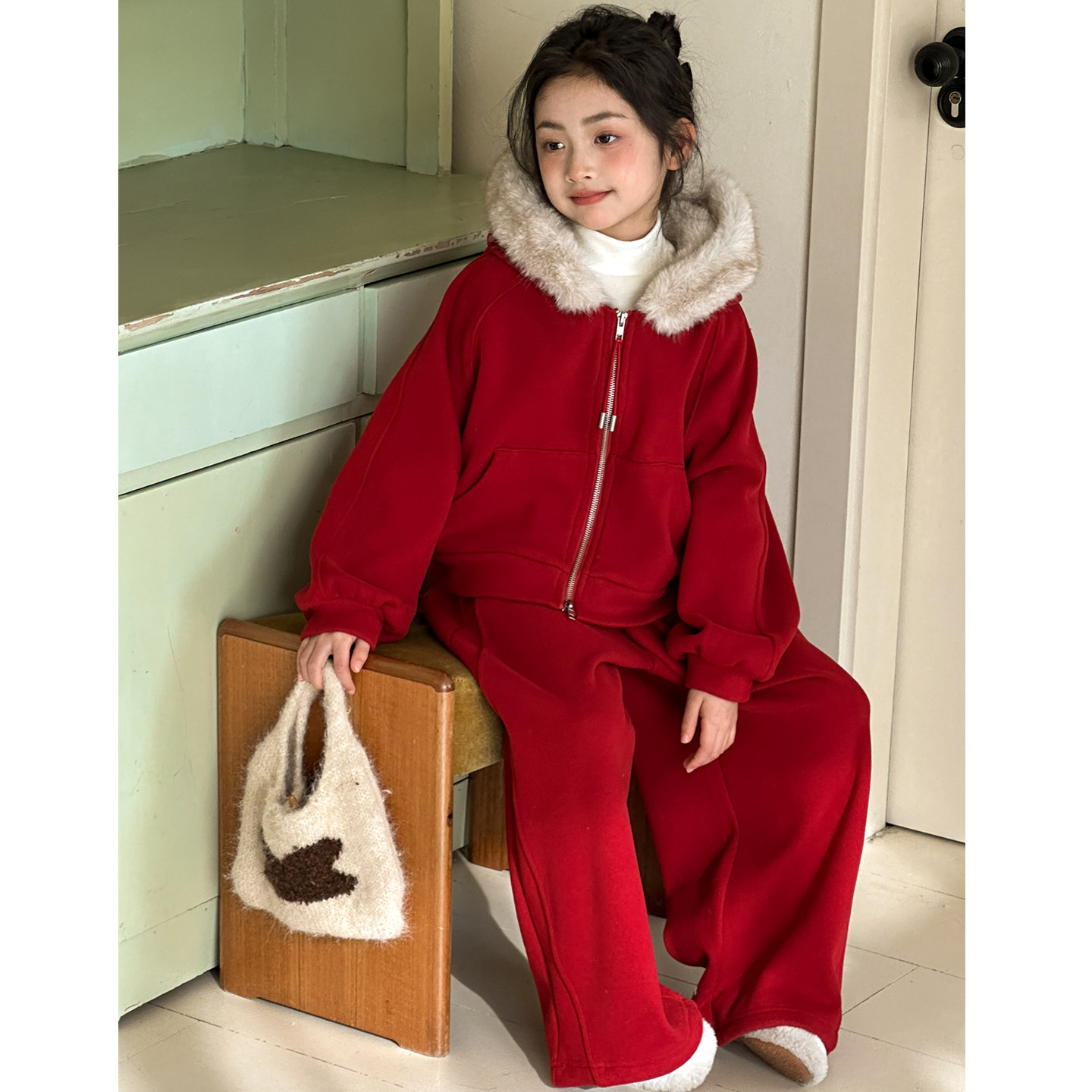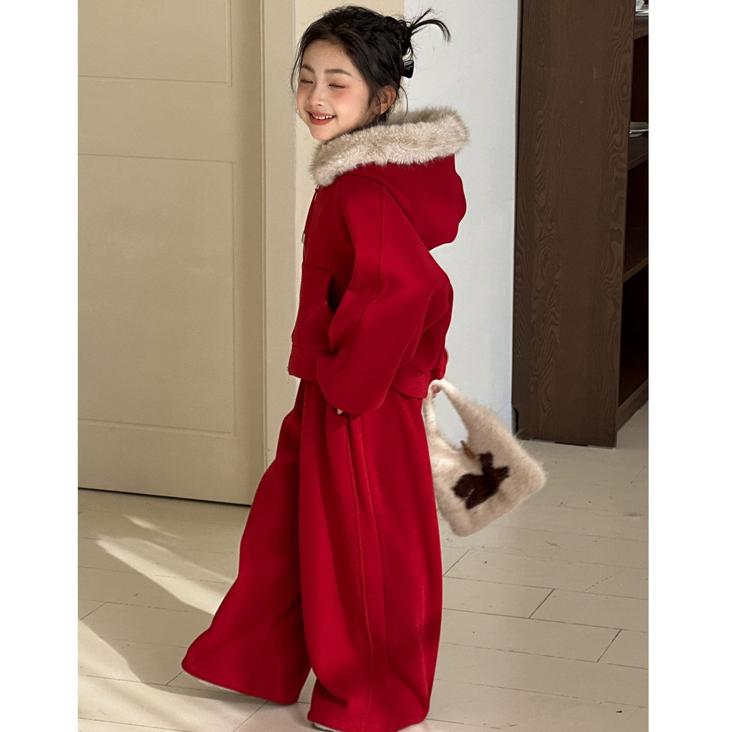 女童加绒卫衣套装冬装2026新款女大童新年衣服青少年红色喜庆年服
