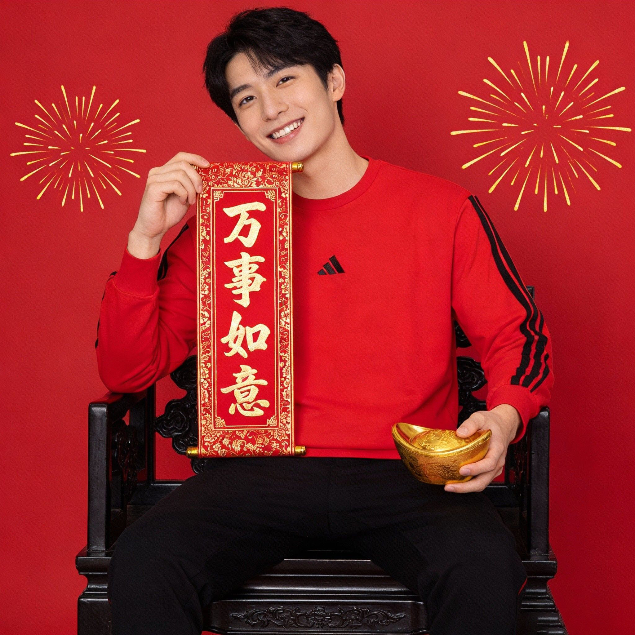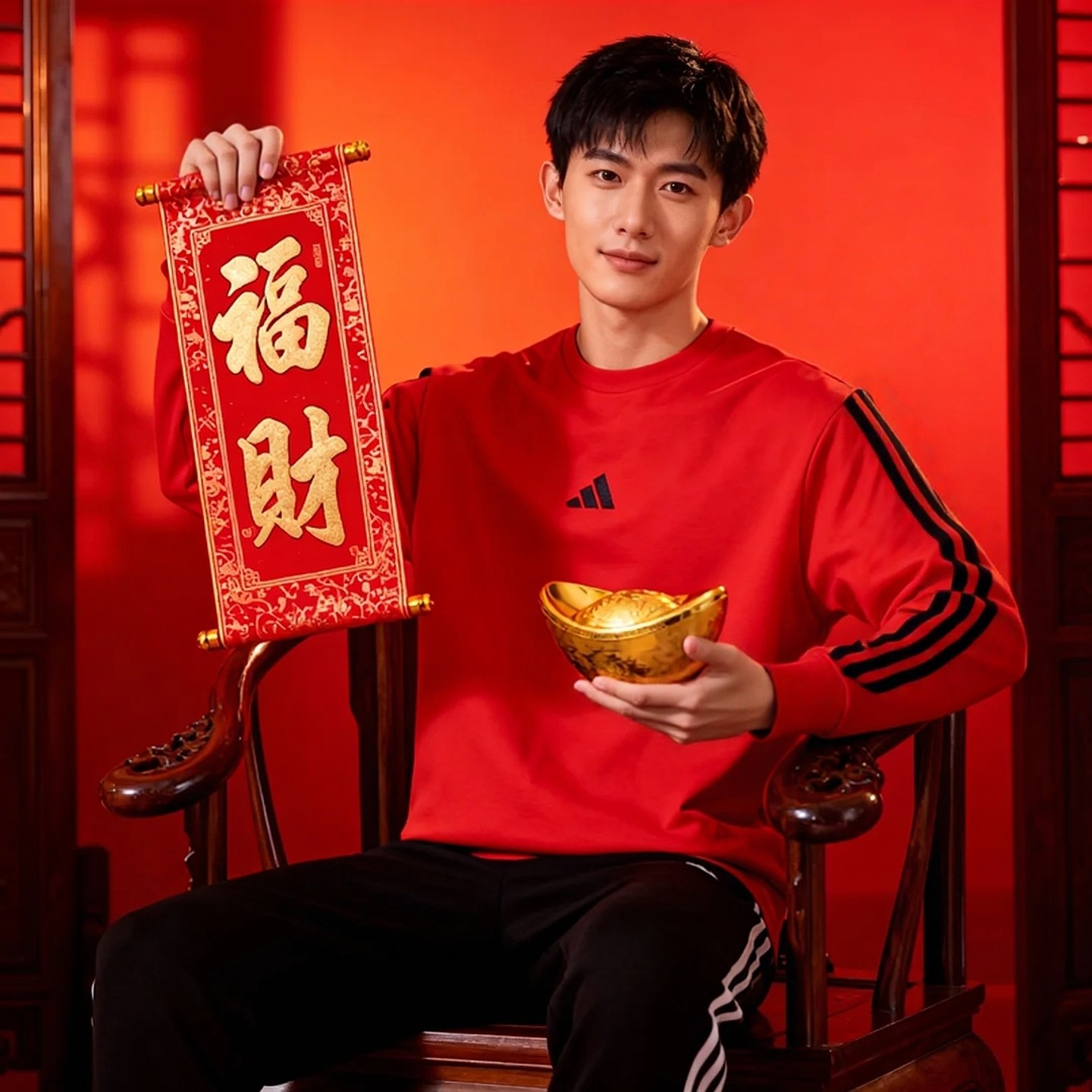 Adidas阿迪达斯官方正品卫衣男款新年款休闲打底衫套头衫红色卫衣