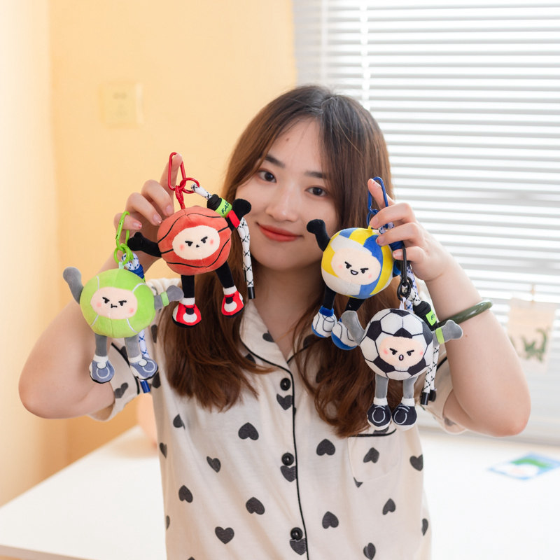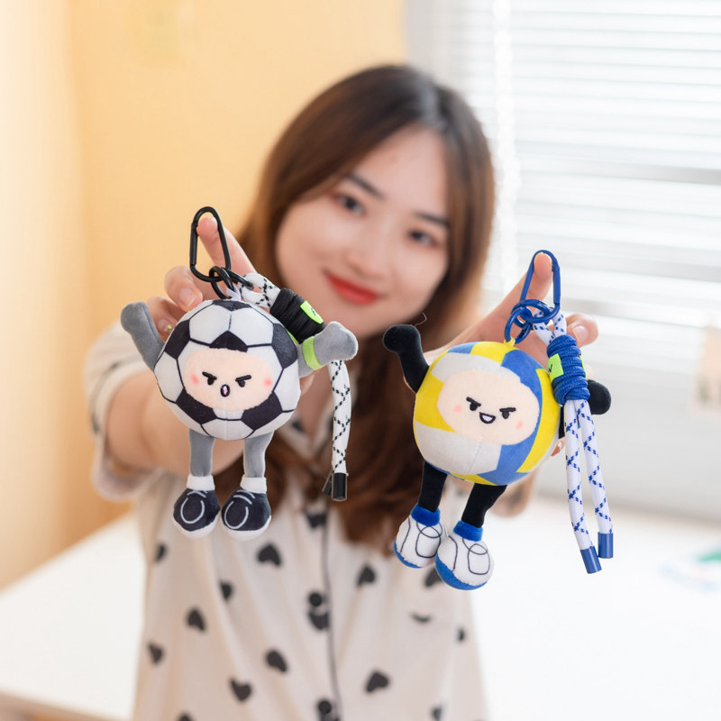 可爱足球钥匙扣挂件迷你小号棒球公仔排球玩偶书包毛绒背包挂饰链