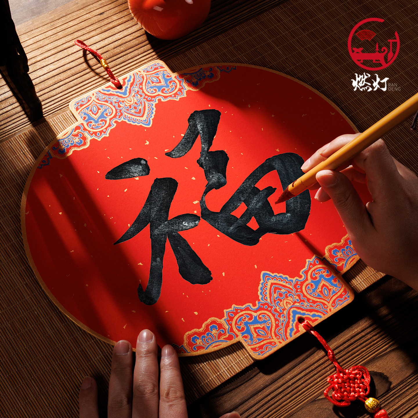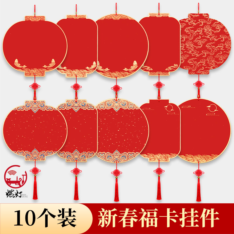 燃灯新春福卡挂件灯笼圆形宫灯挂饰福字挂件2026年新款马年福字门挂手写福字纸空白红纸创意对联春联新年装饰