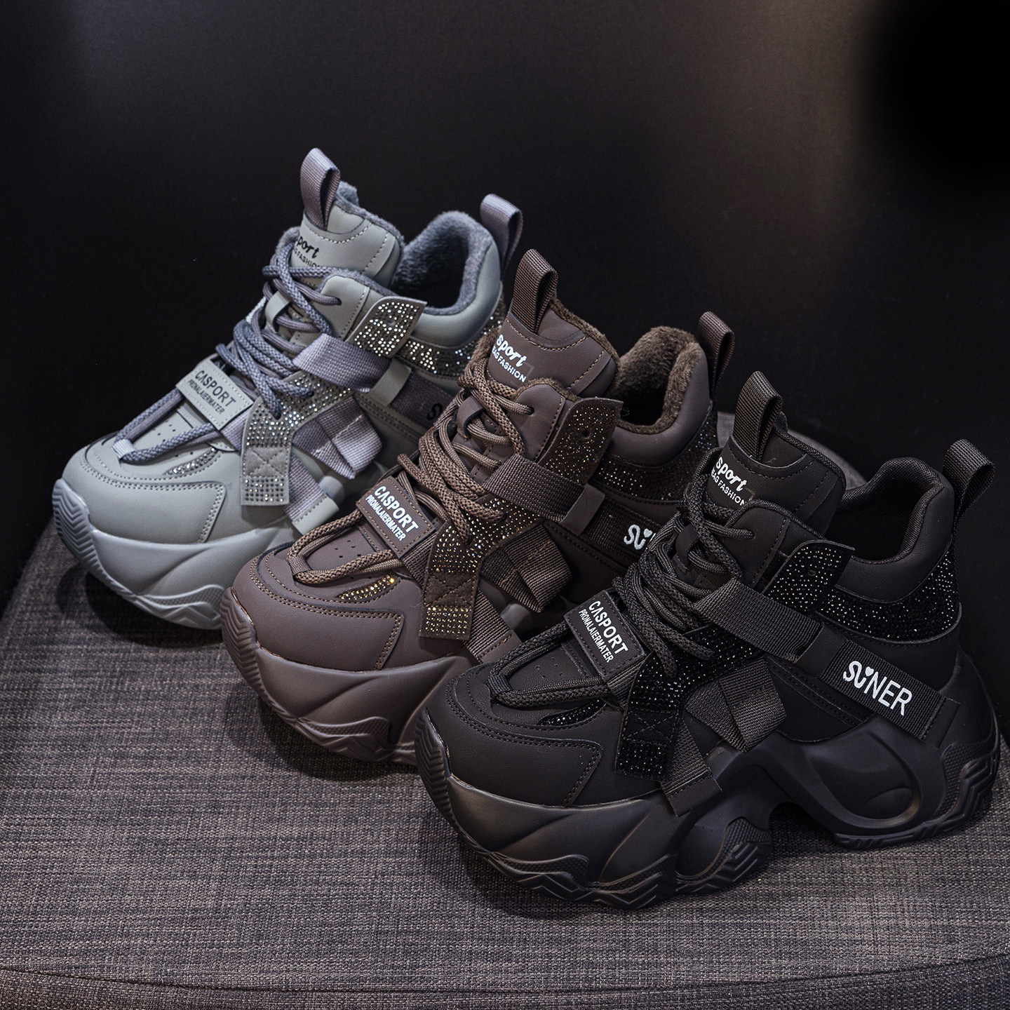 ZFCQ香港厚底加绒内增高老爹鞋女款真皮2025冬8cm显脚小高帮棉鞋