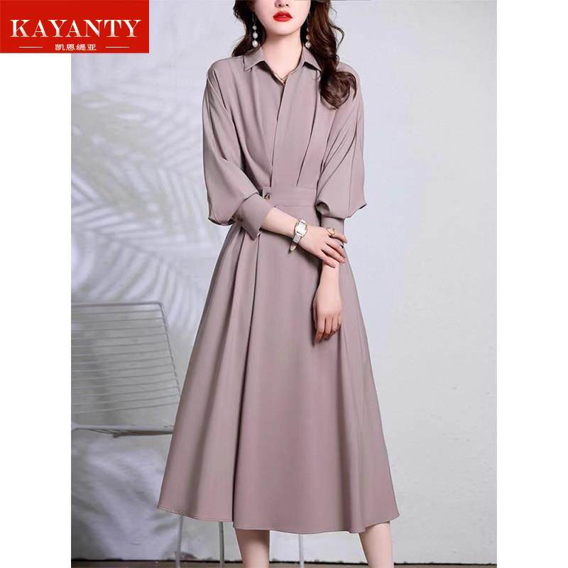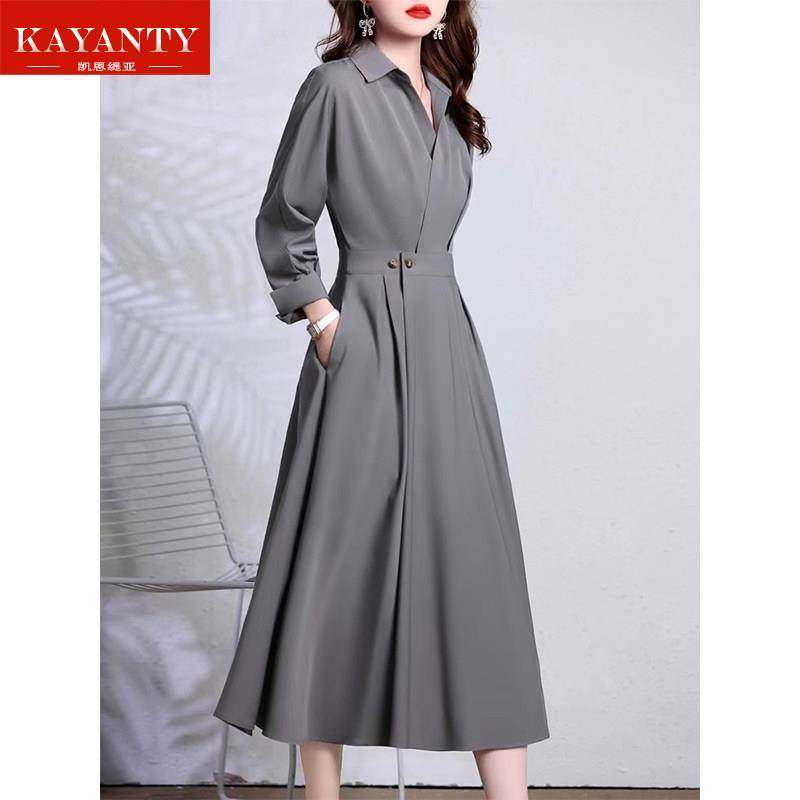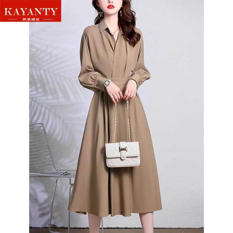 KAYANTY春秋长袖衬衫连衣裙女2025新款气质收腰显瘦高级感长裙子