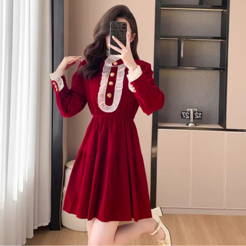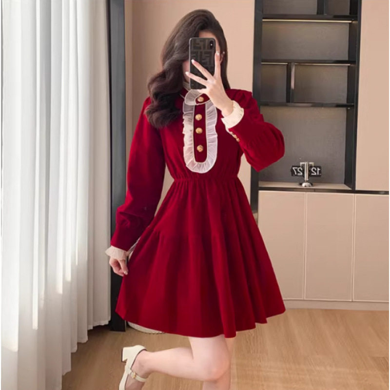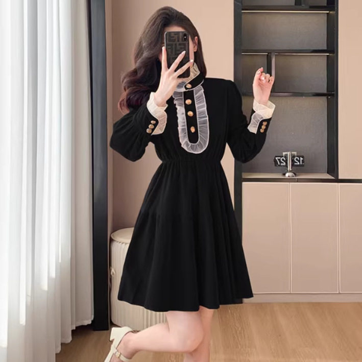 法式长袖丝绒连衣裙女秋冬季小个子高级感气质收腰赫本风黑色短裙