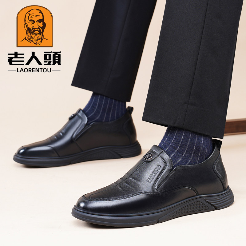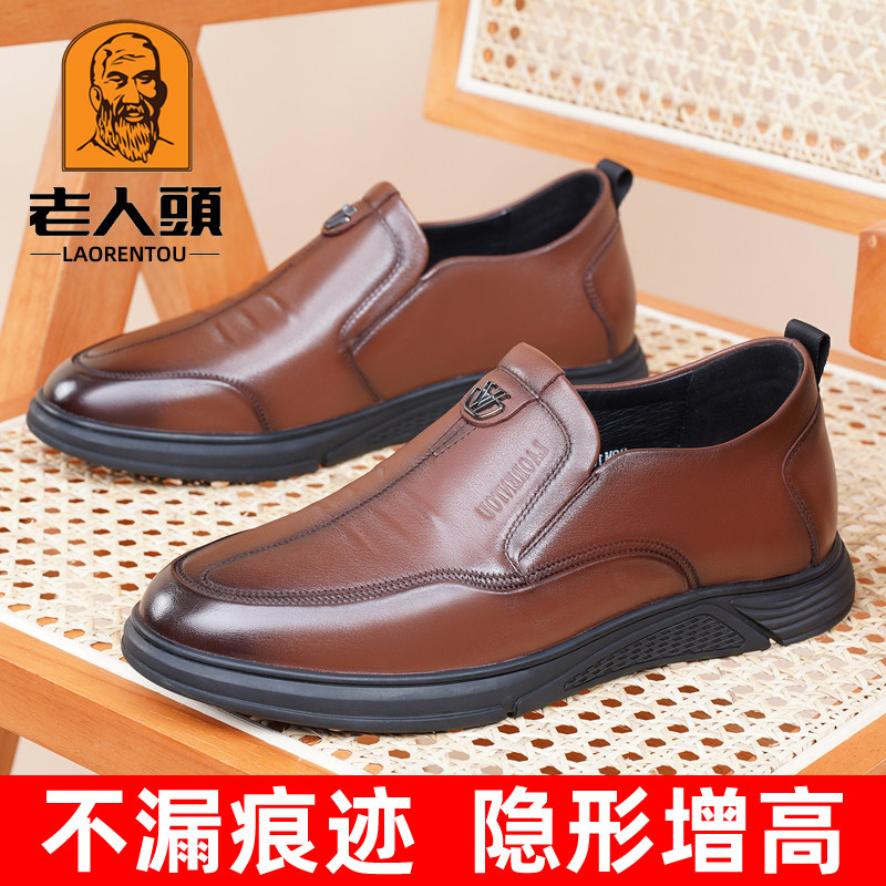 老人头皮鞋男真皮隐形内增高皮鞋男透气休闲男鞋增高6厘米商务鞋